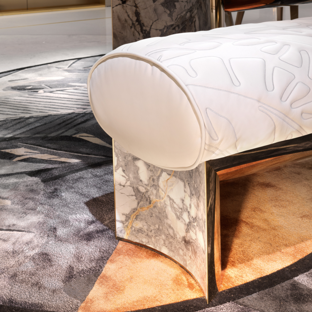 — Изысканный дизайн: Элементы из мрамора придают банкетке эффектный вид, создавая атмосферу роскоши и строгости.