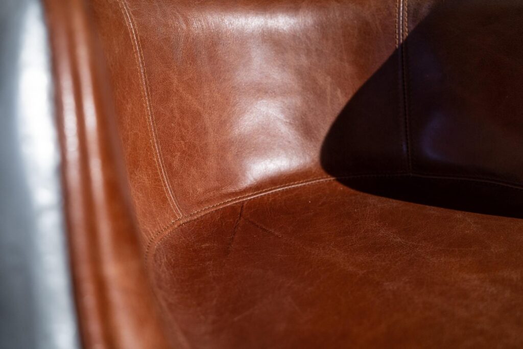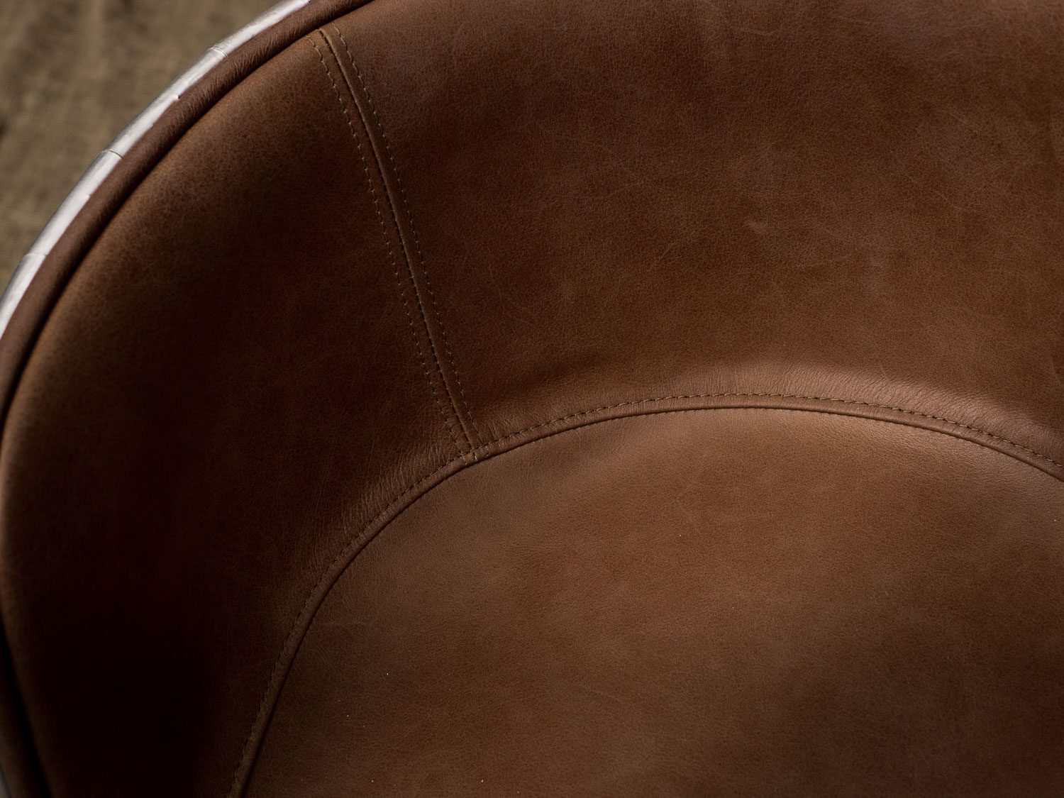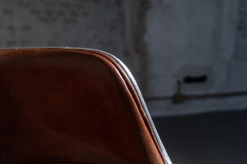 Удобная обивка из коровьей кожи top grain не только обеспечивает комфорт при длительном сидении, но и легко сочетается с различными декоративными элементами, добавляя налёт роскоши и элегантности.