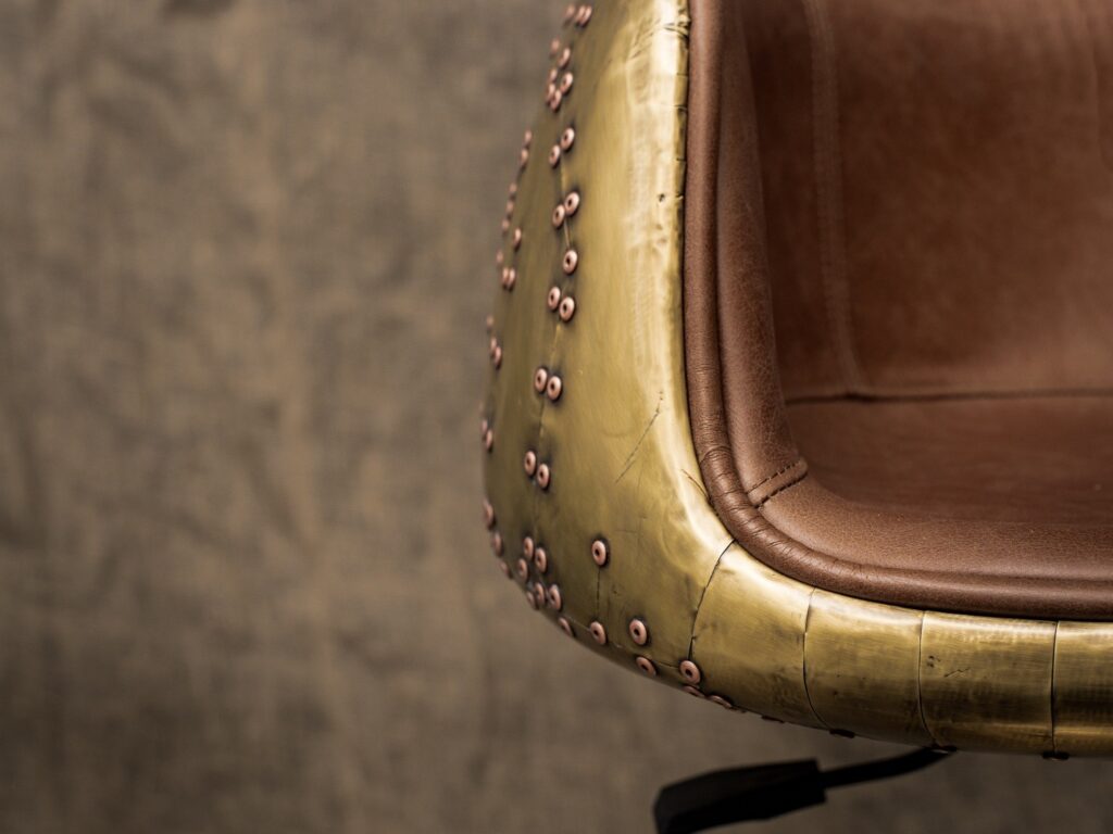 С его металлическим каркасом и нержавеющими стальными ножками, этот барный стул отличается невероятной прочностью и долговечностью. Элегантная отделка из латуни придаст вашему пространству нотки роскоши и vintage-стиля, а мягкая обивка из коровьей кожи top grain обеспечит комфорт даже во время продолжительных встреч с друзьями или семейных праздников.