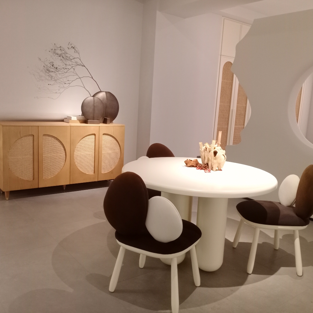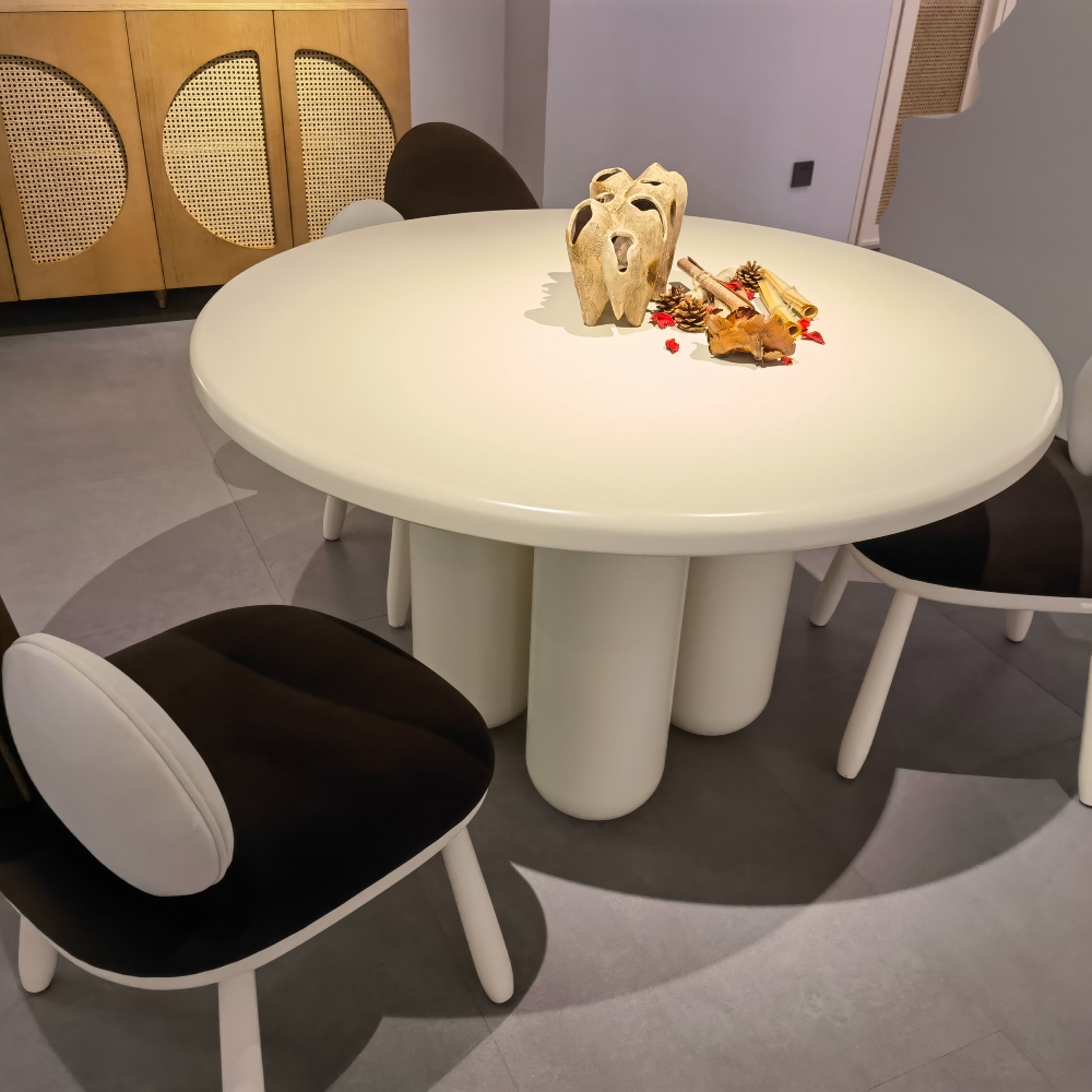 — Эстетика Wabi-Sabi: Этот стол впитывает в себя философию японского дизайна, подчеркивающую естественную красоту неискусственных материалов и форм. Его круглая форма создает уютную атмосферу и вдохновляет на долгие вечерние беседы с близкими.