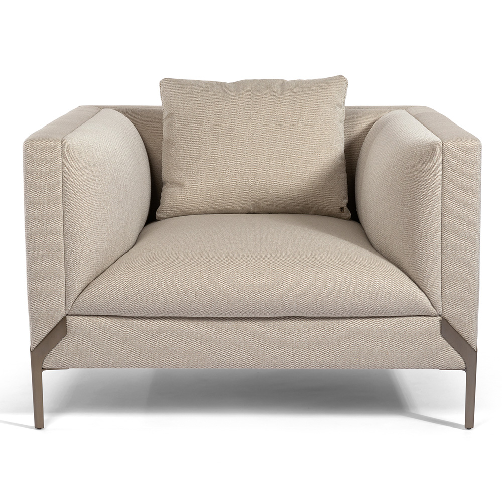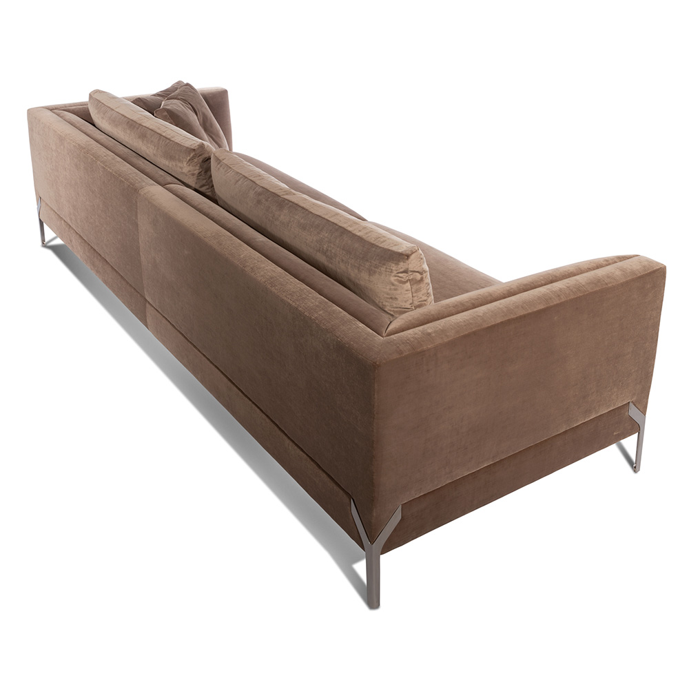 — Прочная конструкция: Внутренняя рама из массива сосны обеспечивает долговечность и надежность, позволяя вам наслаждаться диваном многие годы. Матовые ножки из нержавеющей стали и титана не только добавляют стиль, но и устойчивость.