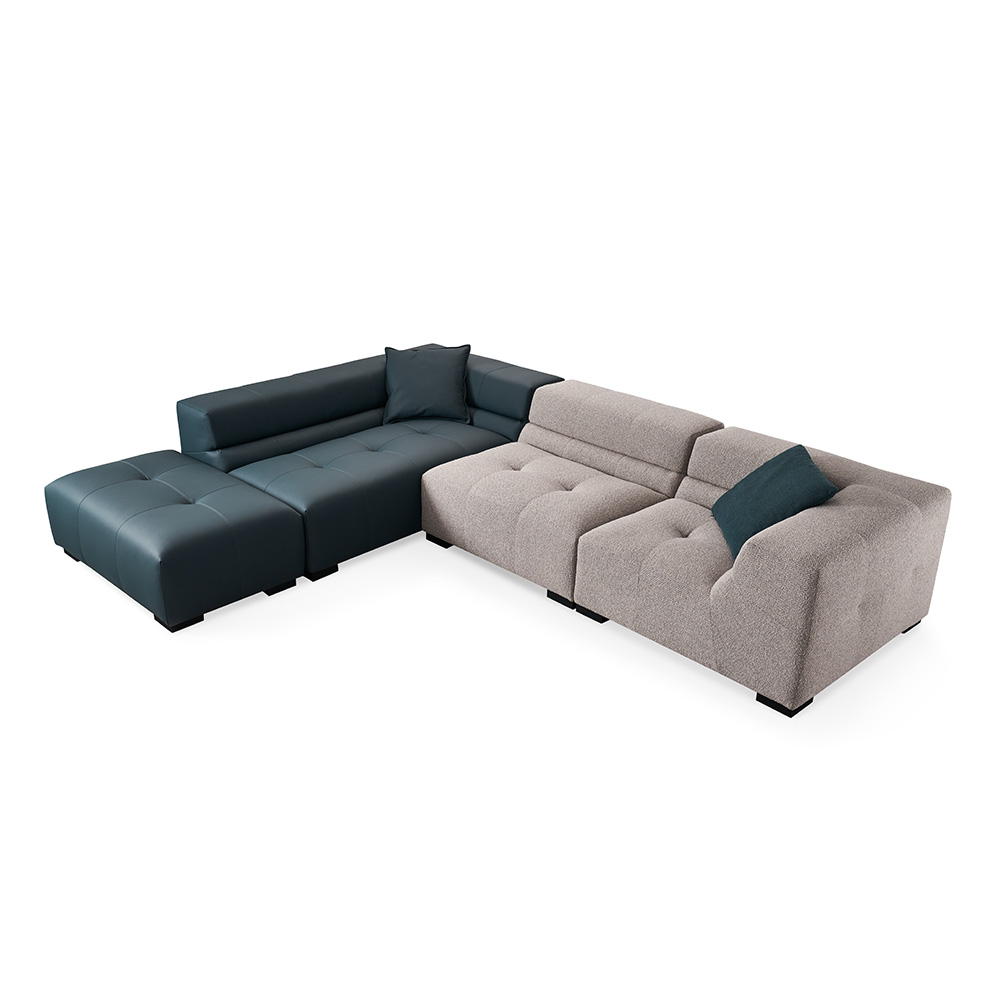 — Разнообразие обивок: Вы можете выбрать один из нескольких вариантов — от натуральной кожи до экокожи на основе микрофибры и фактурной ткани, позволяя вам настроить диван под ваш интерьер.