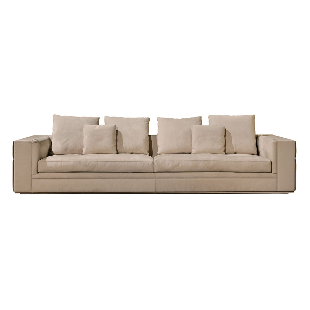 Диван Lucina спроектирован с использованием надежной внутренней рамы из массива сосны и прочной нижней рамы из матовой нержавеющей стали и титана, что гарантирует долговечность и устойчивость к нагрузкам. Он способен вместить до четырех человек, благодаря чему идеально подходит для дружеских встреч или семейных вечеров.