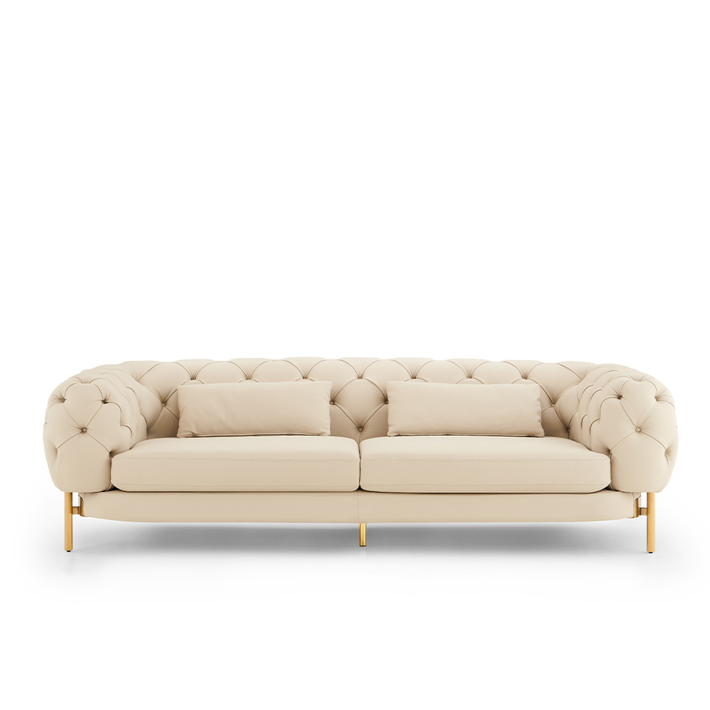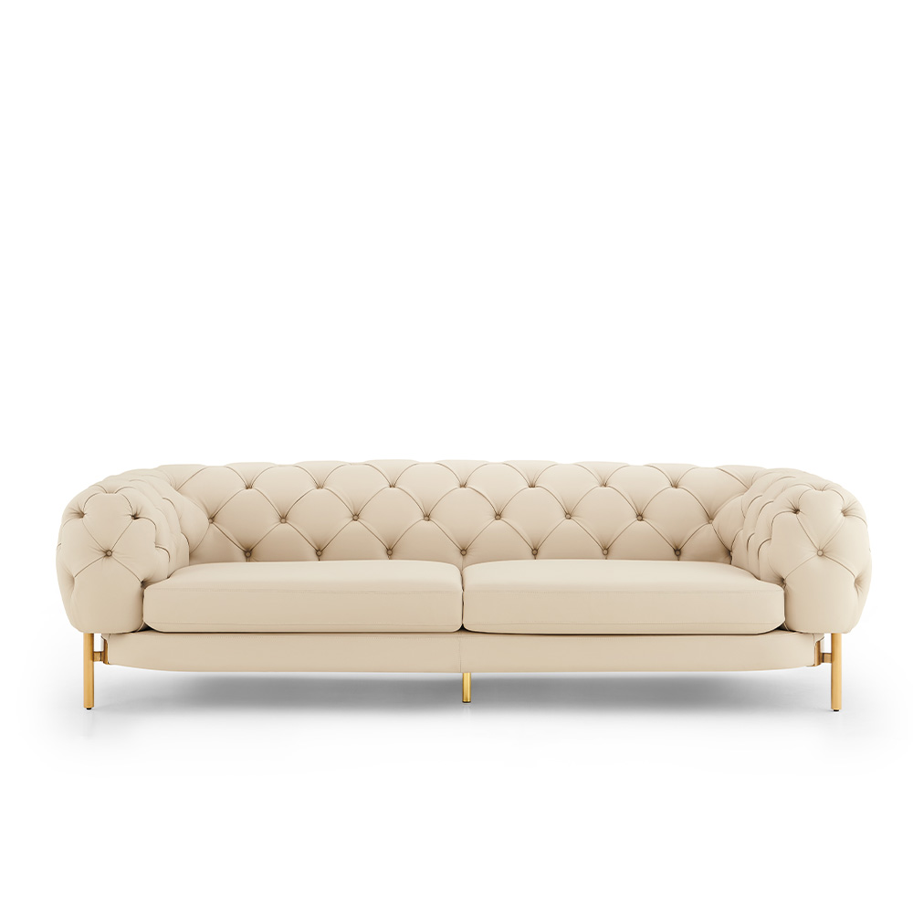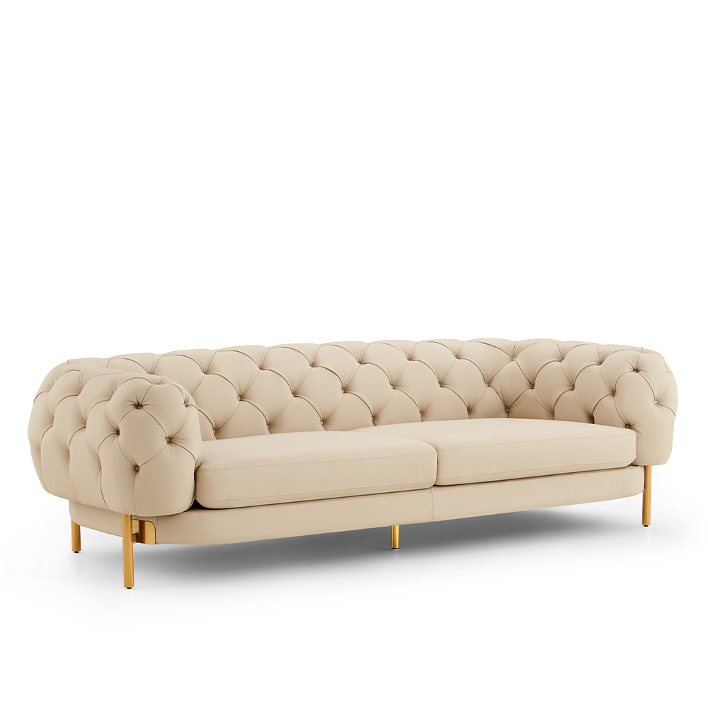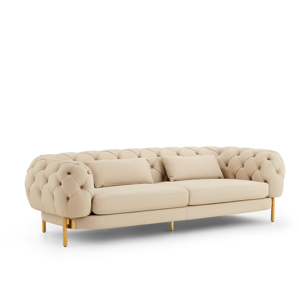 Представляем вашему вниманию диван с каретной стяжкой Miriel — воплощение элегантности и комфорта в вашем интерьере! Этот прямой диван, рассчитанный на три места, станет идеальным центром вашей гостиной, приглашая вас и ваших близких наслаждаться непревзойденным уютом.