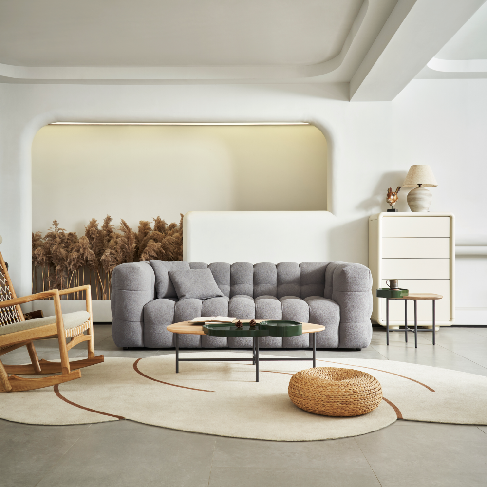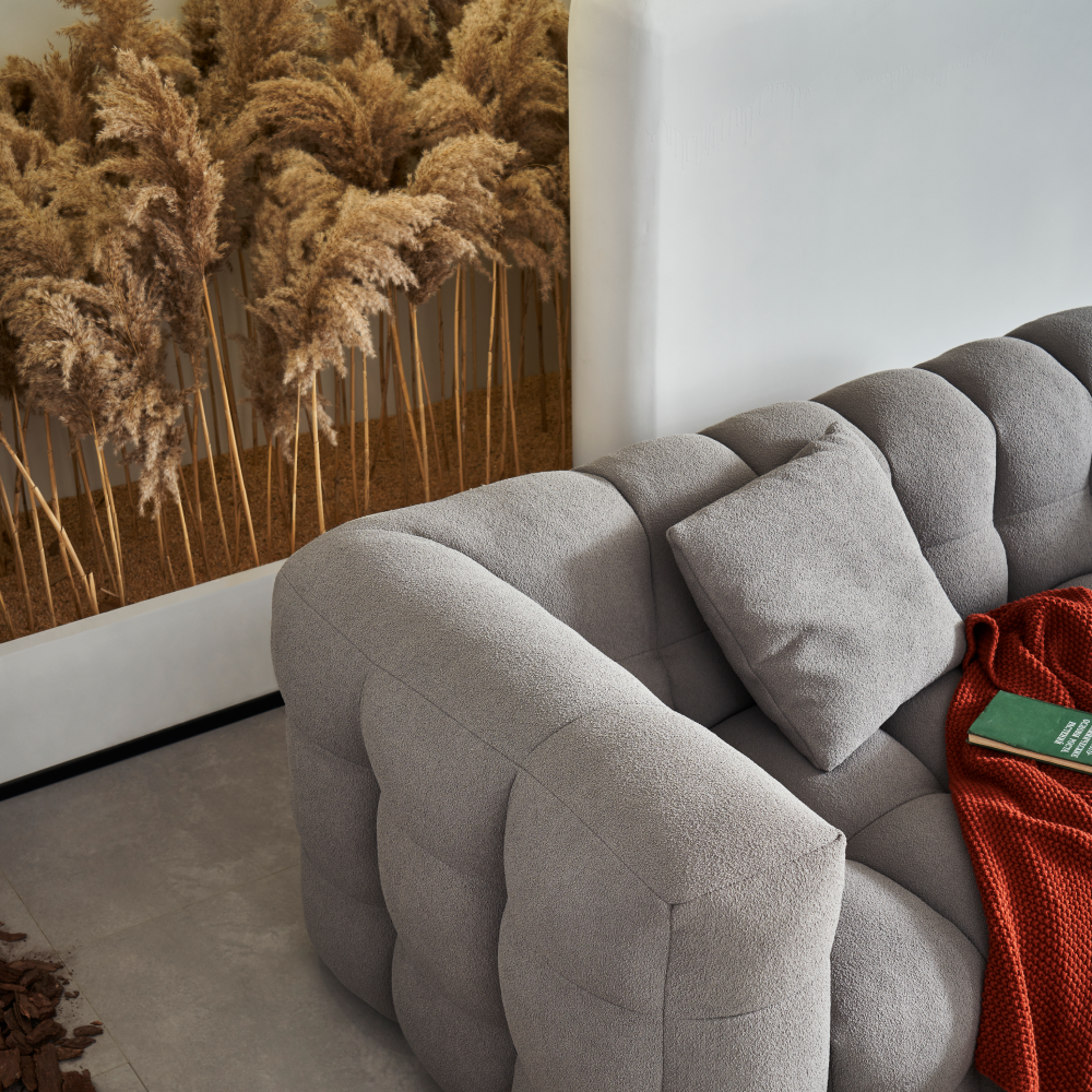 Пригласите в ваш дом гармонию и уют с нашим стильным диваном со стяжкой Bubble Boucle из коллекции Wabi-Sabi. Этот шедевр сочетает в себе искусство минимализма и термины японской философии, создавая идеальное место для отдыха и общения.