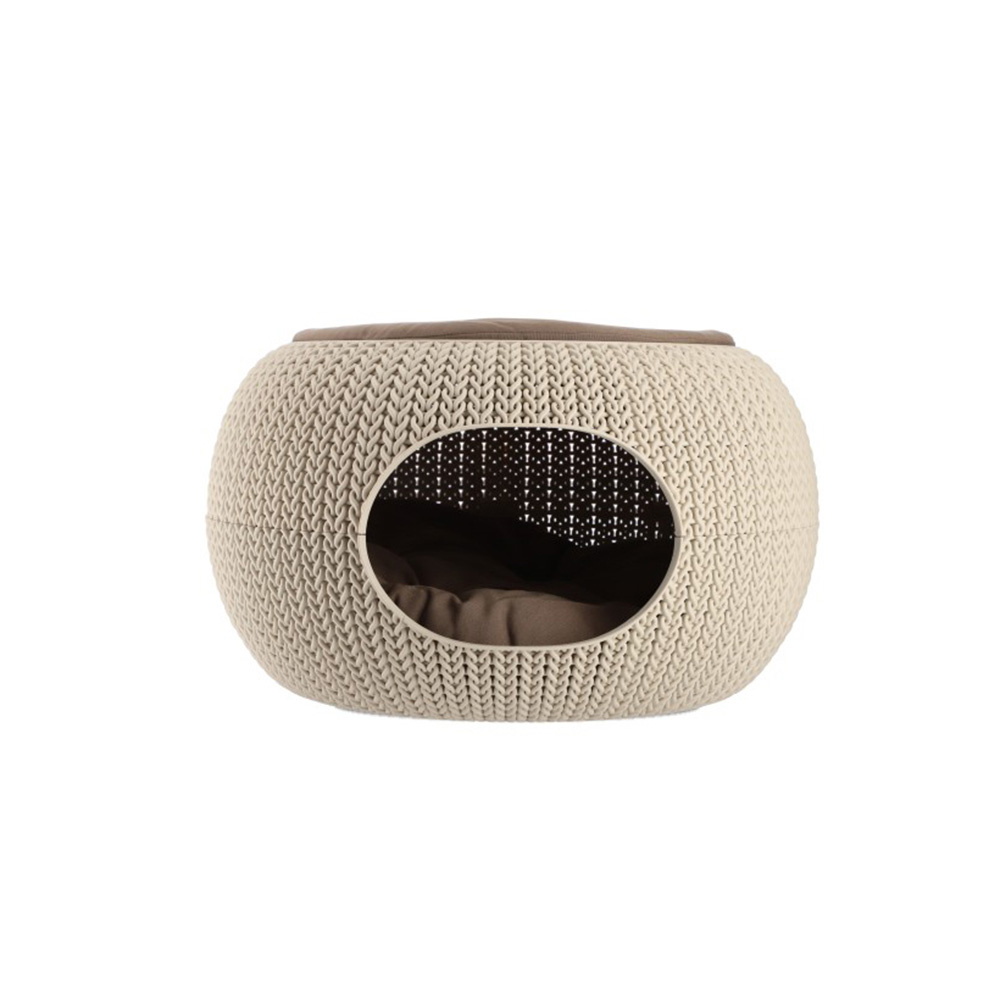 Изготовленный из высококачественного полипропилена, домик сочетает в себе прочность и легкость, что делает его идеальным выбором для активных питомцев. Плетёный узор придаёт изделию тепло и естественность, создавая комфортное пространство для отдыха вашего животного.