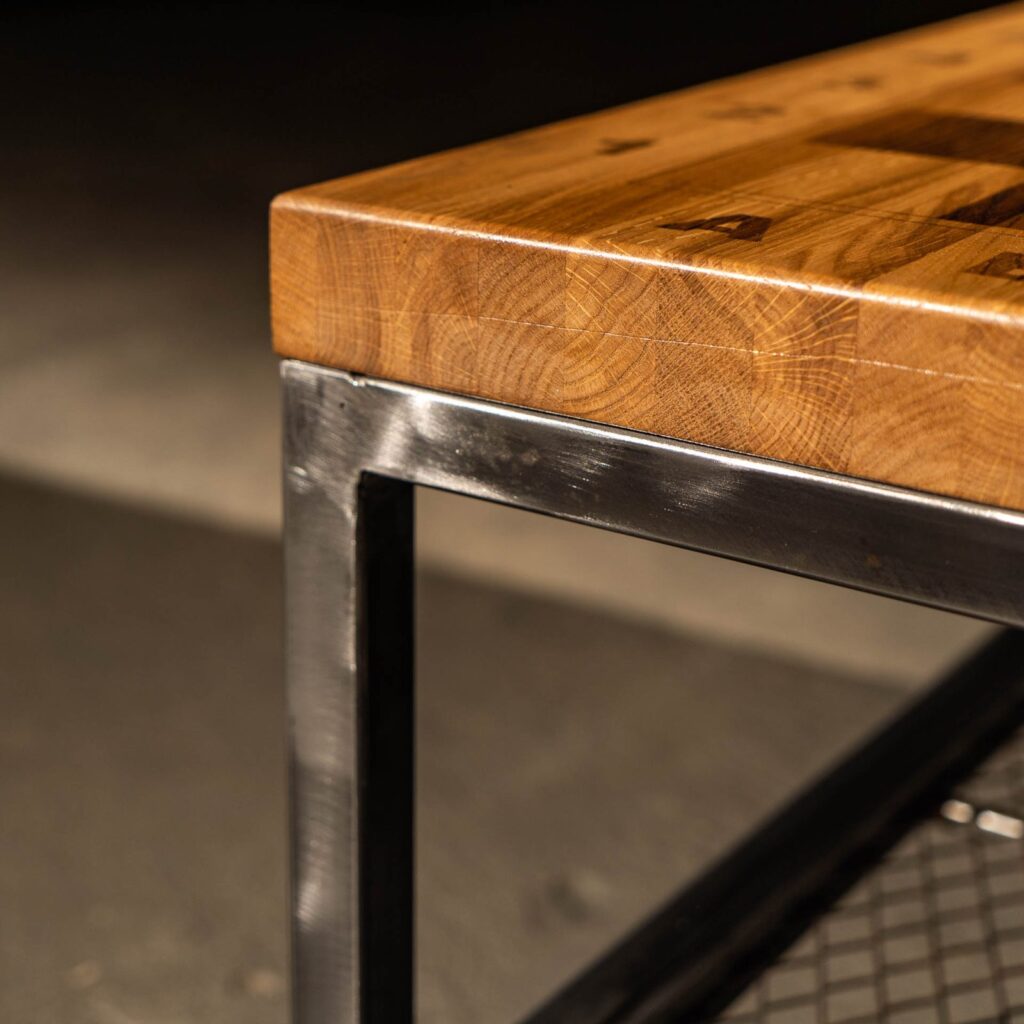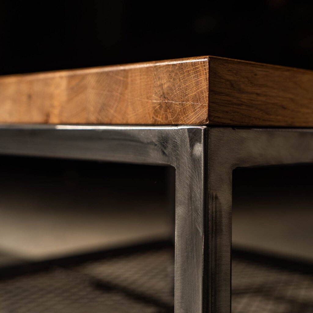— Элегантное сочетание материалов: Основание столика выполнено из прочного холоднокатанного металла, что обеспечивает ему надежность и долговечность. Столешница из натурального дуба придает изделию теплоту и изысканный вид, подчеркивая вашу страсть к качеству и стилю.