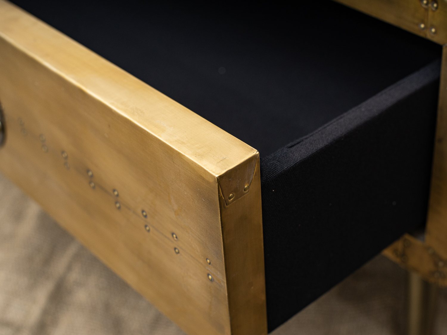 — Эксклюзивный дизайн: Столик выполнен в стиле авиации, что придает ему характерный и запоминающийся вид. Латунная отделка и металлический каркас создают эффектный контраст с деревянной основой из лиственницы, добавляя тепла и уюта в ваш интерьер.