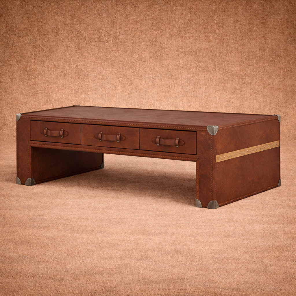 Ключевые особенности: — Изысканный материал: Каркас столика выполнен из качественного дерева, который придает ему надежность, а черная нержавеющая сталь добавляет современный шик. Эти прочные элементы в сочетании с отделкой из кожи и латуни создают уникальную текстуру и визуальный интерес. — Лофтовый стиль: Столик вписывается в любые интерьерные решения в стиле лофт, добавляя нотку индустриальной эстетики. Он отлично подходит как для уютного утреннего кофе, так и для вечернего общения с друзьями. — Долговечность и уход: Прочные материалы не только делают столик долговечным, но и позволяют легко ухаживать за ним, обеспечивая его идеальный внешний вид на протяжении долгого времени.