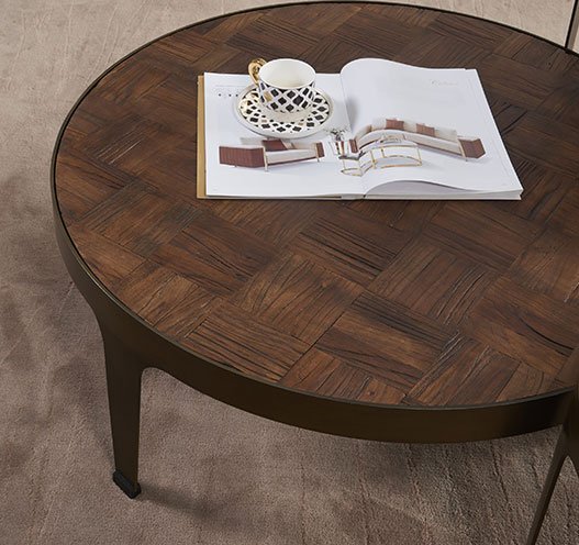 — Современный дизайн: Округлая форма столика напоминает о простоте и функциональности индустриального стиля, в то время как изысканная отделка привносит элемент утончённости.