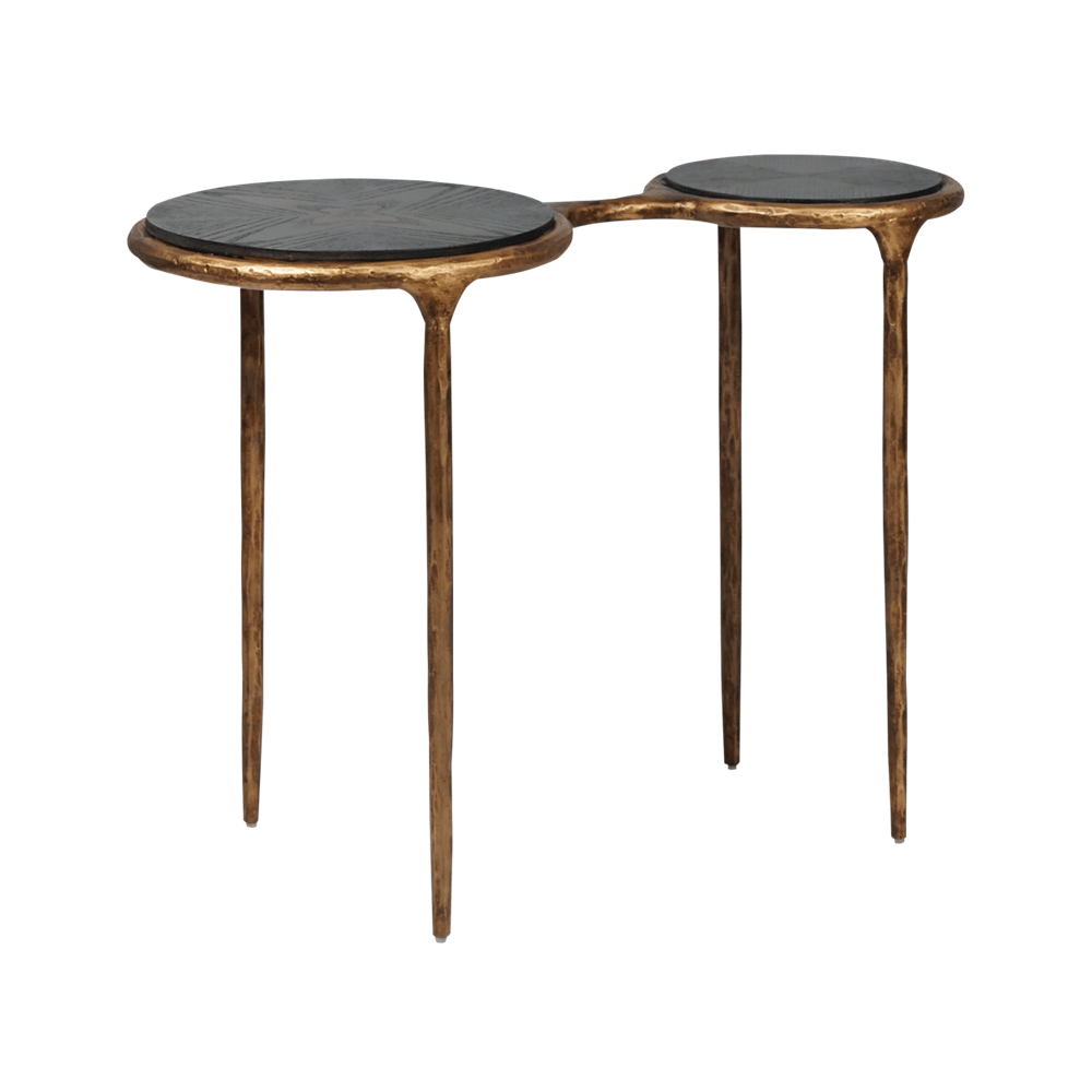 С его круглой формой и элегантной комбинацией материалов, столик Triple Round легко впишется в любой интерьер. Столешница из карчаг привносит ноту натуральности и оригинальности, в то время как прочная металлическая основа из железа с бронзовым покрытием устраняет любые сомнения в его надёжности. Эта гармония материалов и дизайна делает столик идеальным выбором для тех, кто ценит как функциональность, так и эстетику.