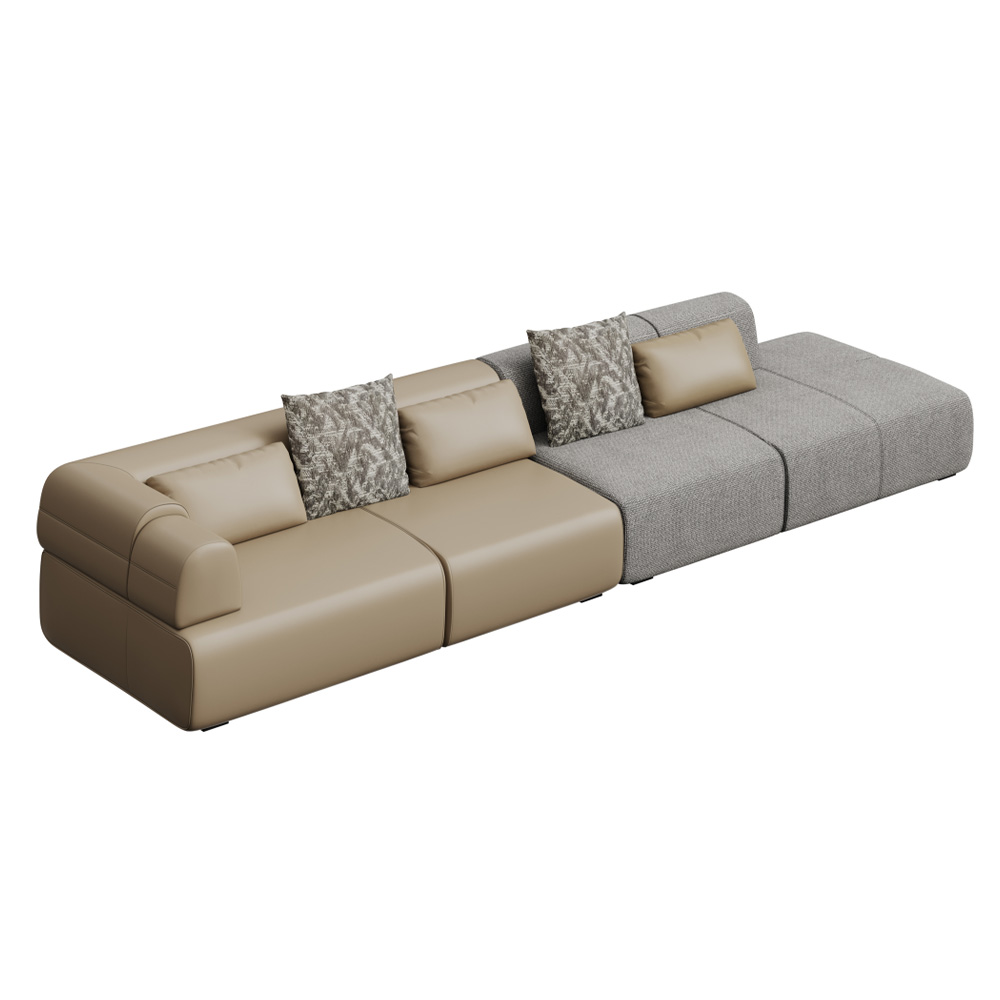 — Изысканная обивка: Благодаря комбинированной коже, экокоже на основе микрофибры и мягкой ткани, этот диван не только выглядит стильно, но и легко очищается, что делает его идеальным выбором для любой семьи.