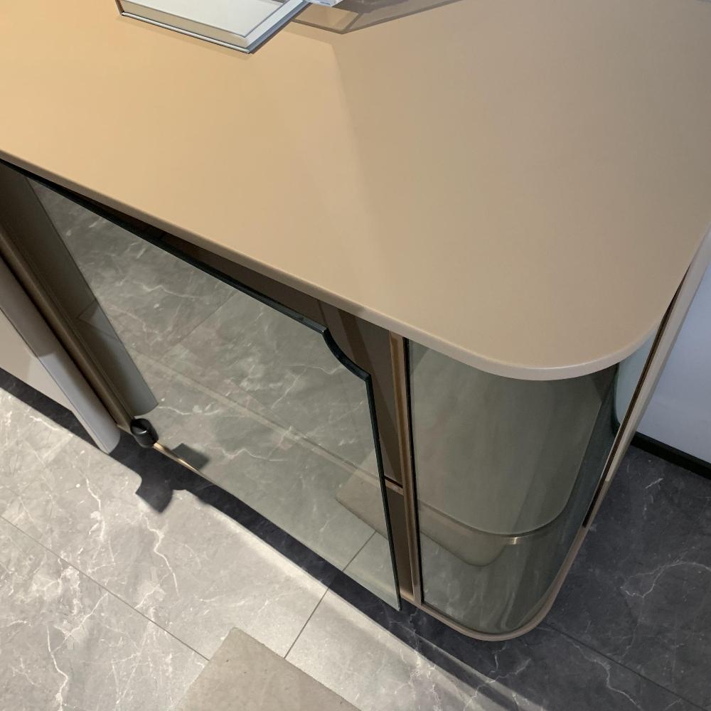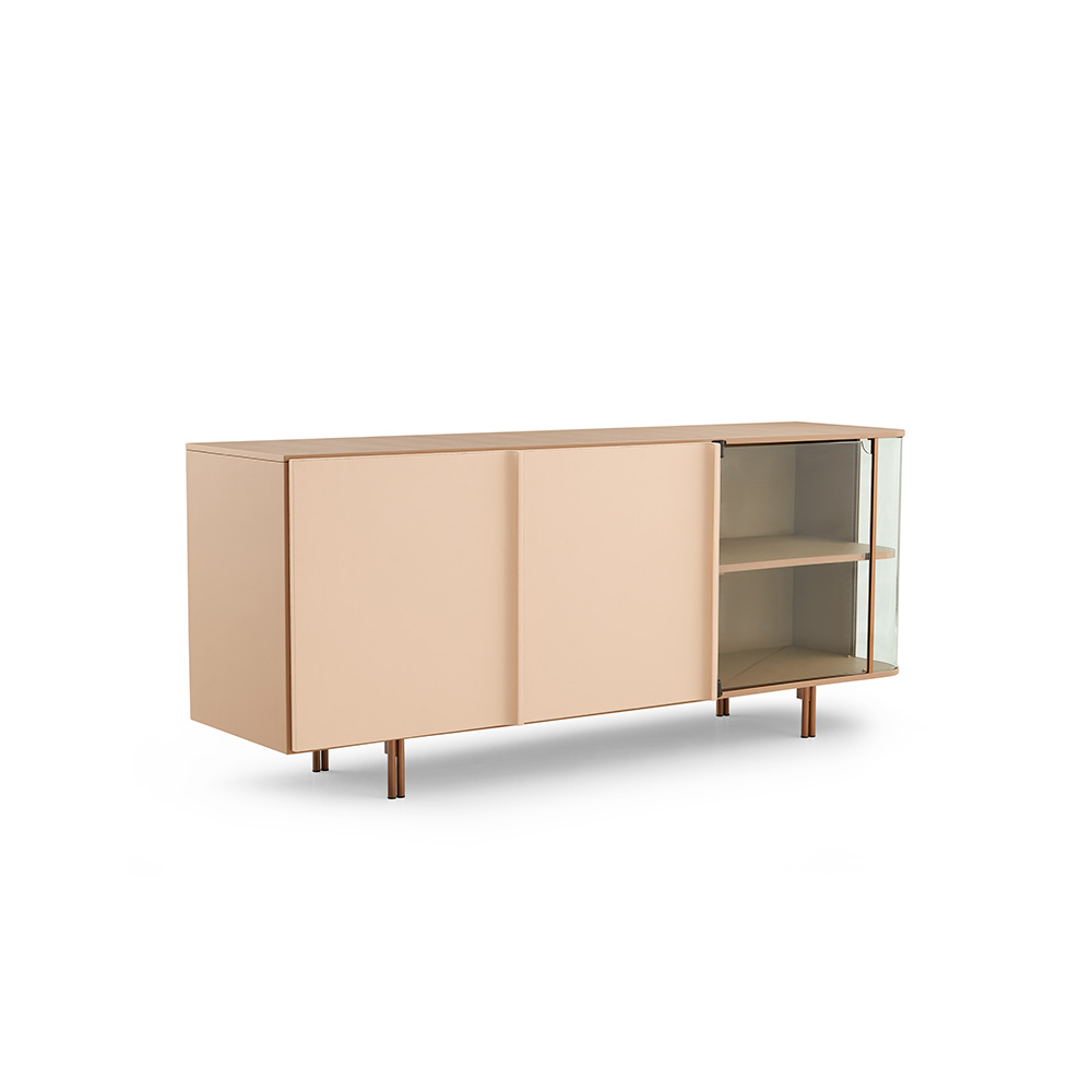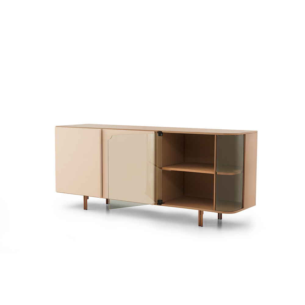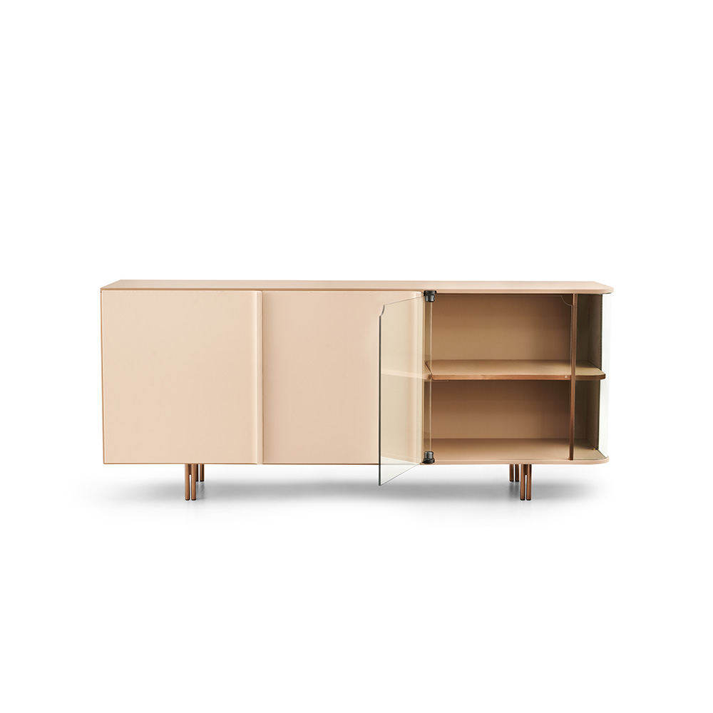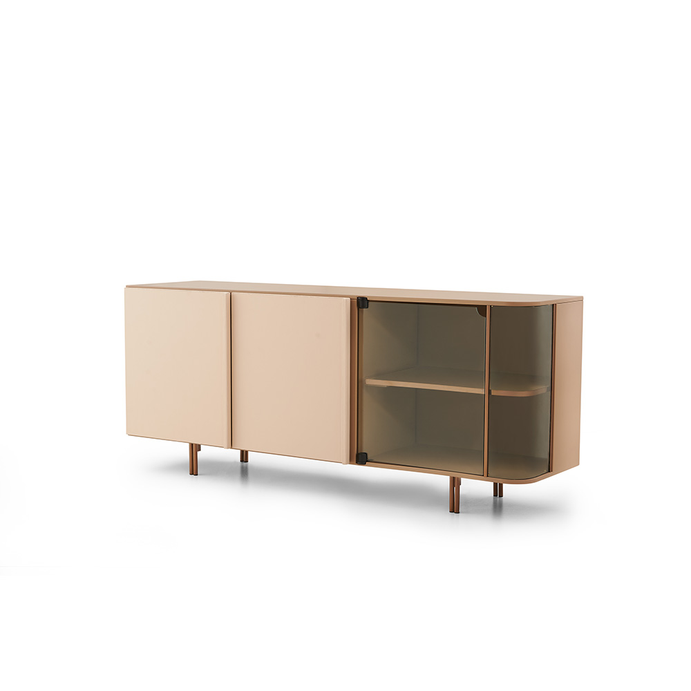 Особенностью Talos Wide являются его изящные ножки из матовой нержавеющей стали, выполненные в роскошном оттенке розового золота. Этот интересный акцент добавляет нотку элегантности и делает комод центром внимания в вашей комнате. Мягкая микрофибра, используемая для отделки, не только выглядит стильно, но и обеспечивает приятные тактильные ощущения, что делает использование этого комода еще более комфортным.