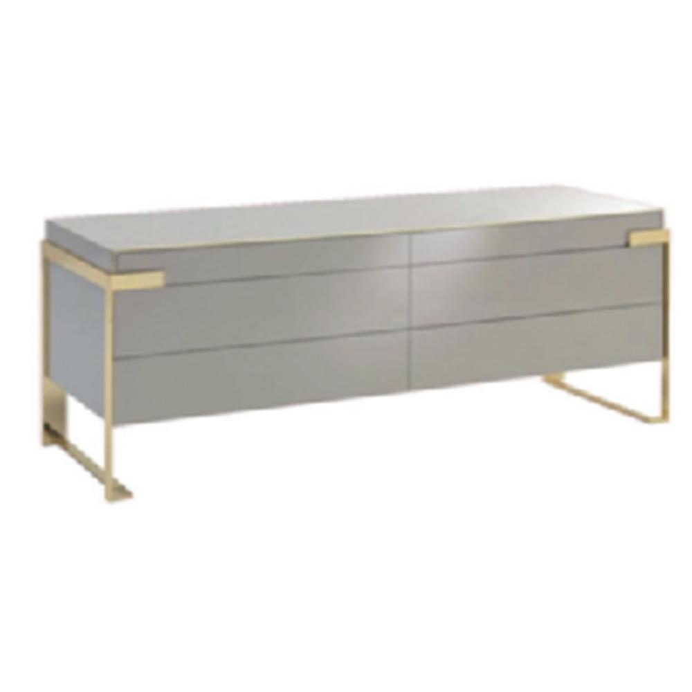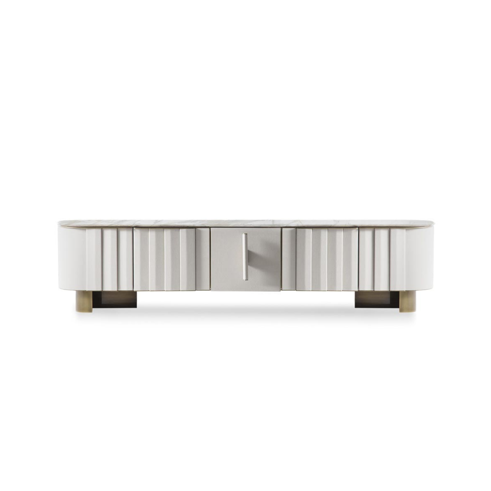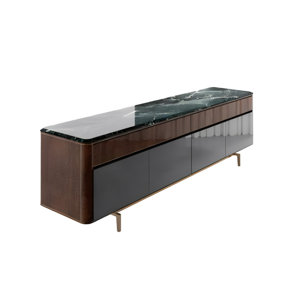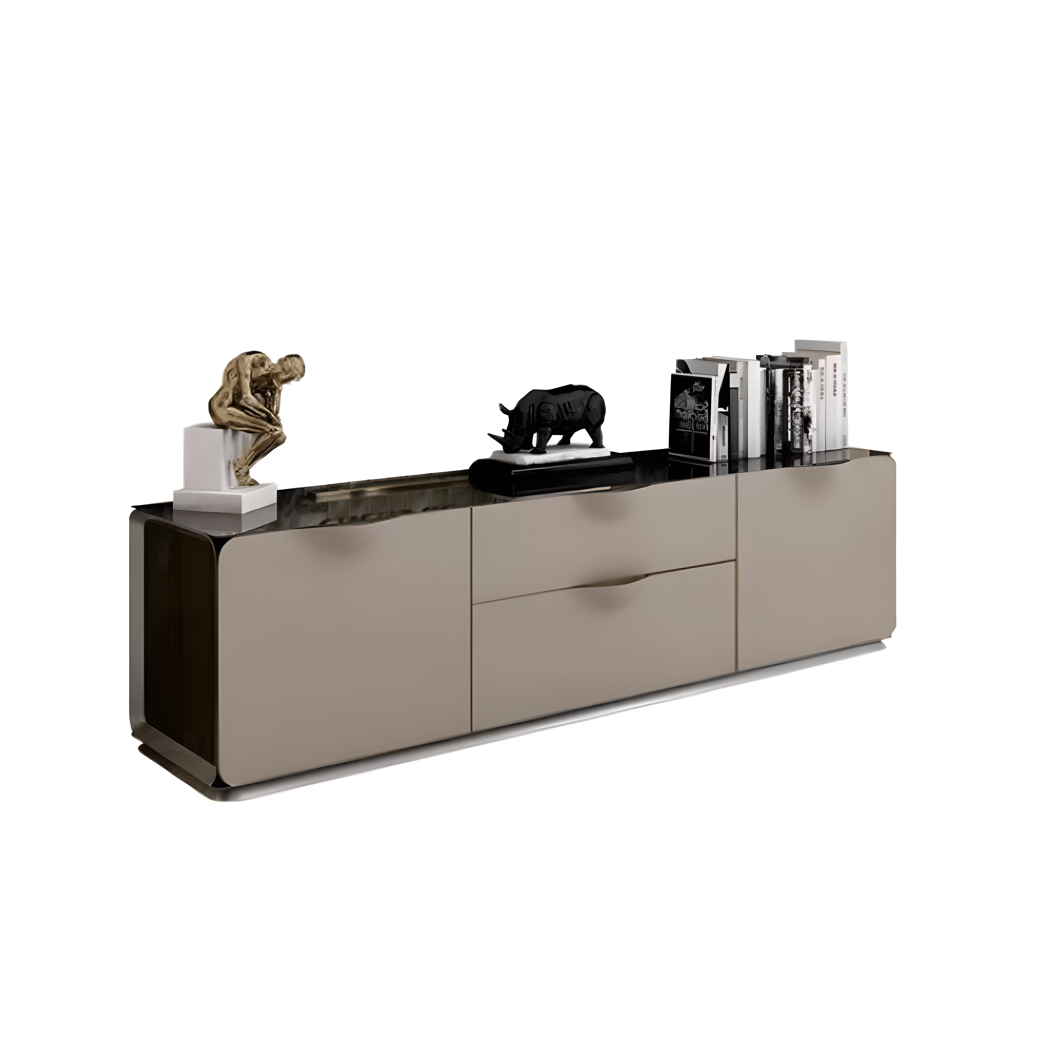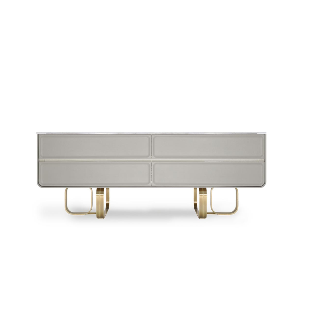 Комод Vette выполнен с использованием шикарной микрофибры, которая добавляет нотку роскоши, а несколько вариантов отделки, таких как матовая нержавеющая сталь в сочетании с эффектом розового золота, делают его универсальным решением для любого стиля интерьера – от классического до ультрасовременного.