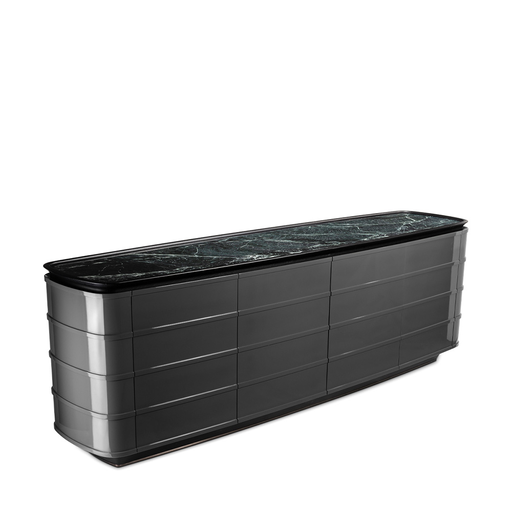 Изящные материалы: Комод выполнен с верхней поверхностью из натурального мрамора, который придаёт роскошный вид и гарантирует долговечность. Корпус из нержавеющей стали с матовым покрытием розового золота добавляет современный штрих и великолепно гармонирует с любым декором. Ящики выполнены из E1 плиты с высоким содержанием волокна, что делает их прочными и устойчивыми к повреждениям.