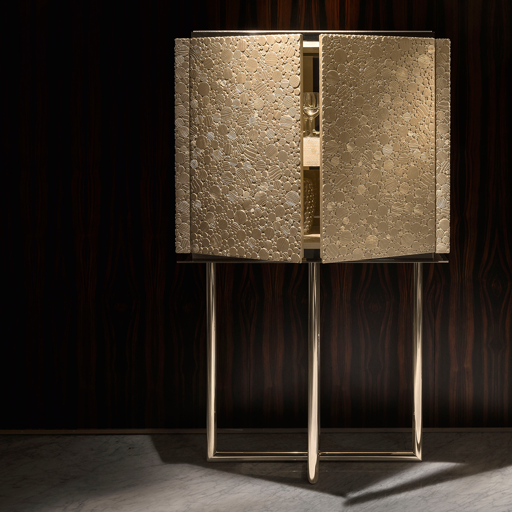 Каждая деталь этого комода говорит о безупречном мастерстве: изысканная резьба и покрытие матовой бронзой придают ему уникальный характер и винтажный шарм. Высокие металлические ножки не только добавляют комоду современный вид, но и обеспечивают надежность и стабильность.