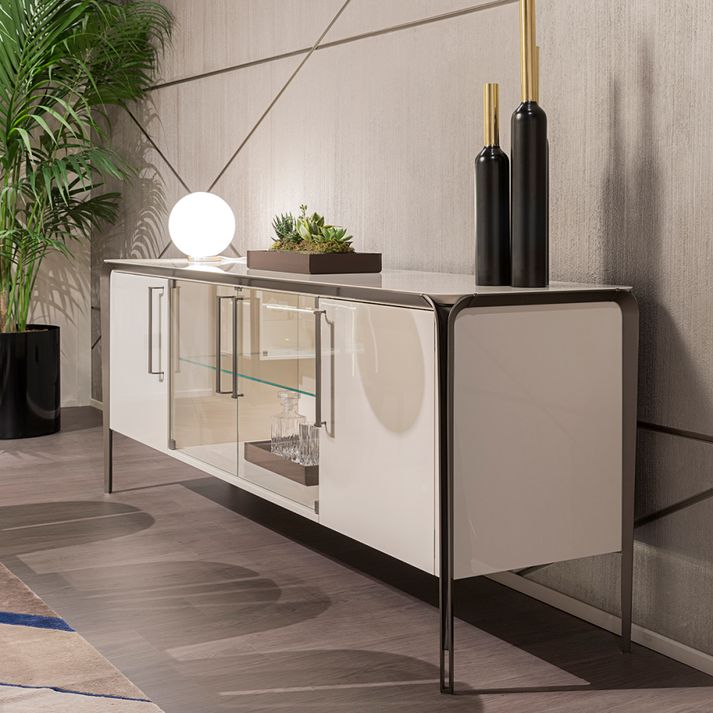 Ключевым элементом дизайна Attis являются элегантные закаленные стеклянные дверцы, которые придают этому предмету мебели современный и воздушный вид. Убедитесь, что ваши вещи всегда под рукой, при этом оставаясь аккуратно скрытыми за стильными дверцами, которые обрамлены прочным каркасом из нержавеющей стали черного цвета. Этот каркас не только добавляет устойчивости, но и создает эффектный контраст с корпусом комода.