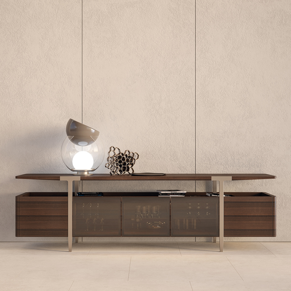 Ножки из нержавеющей стали с бронзовой полировкой придают комоду еще больше шика и стабильности. Эта комбинация материалов обеспечивает долговечность и стиль, делая Balius отличным выбором для любого стиля — от современного до классического.