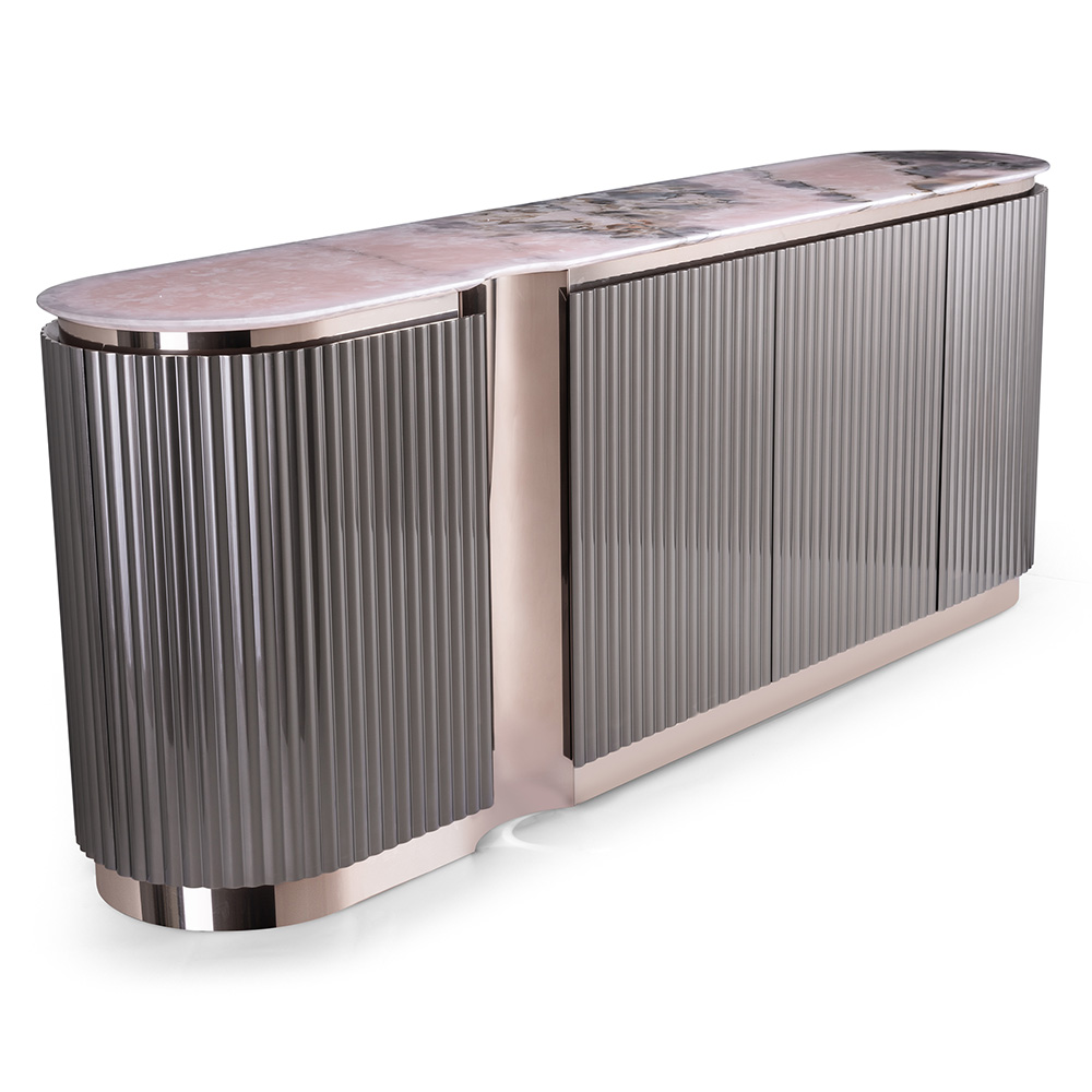 — Стильная оправа из нержавеющей стали: Изысканный матовый розовый цвет оправы придает комоду утонченный вид, гармонирующий с любым стилем интерьера. Нержавеющая сталь гарантирует долговечность и стойкость к повреждениям.