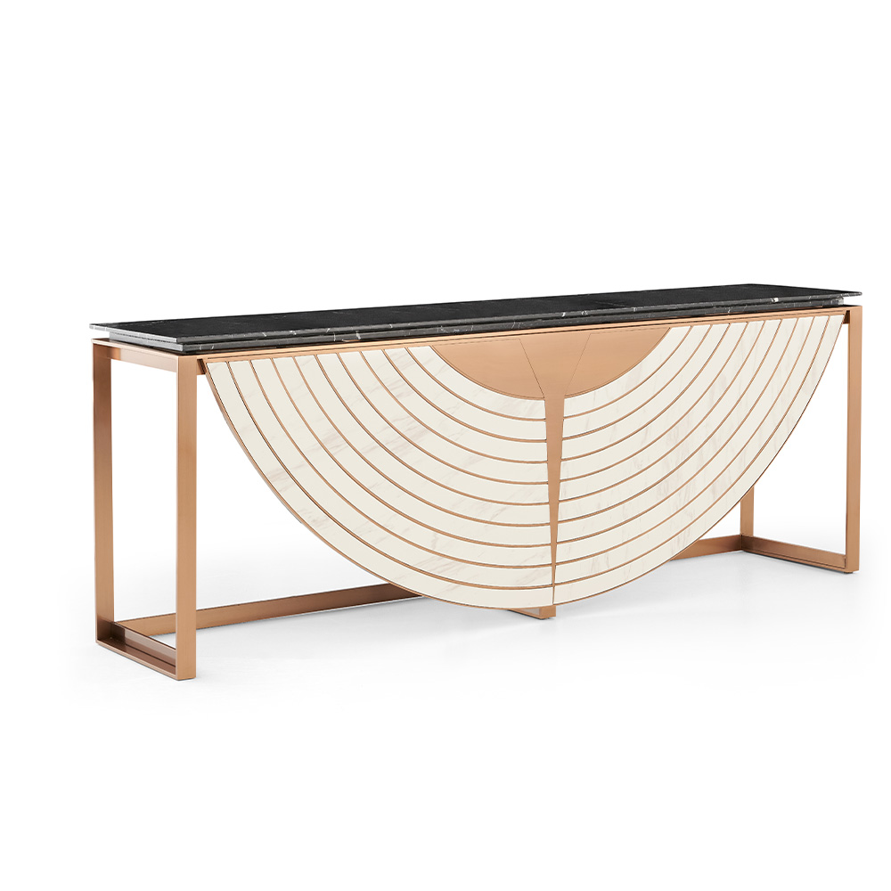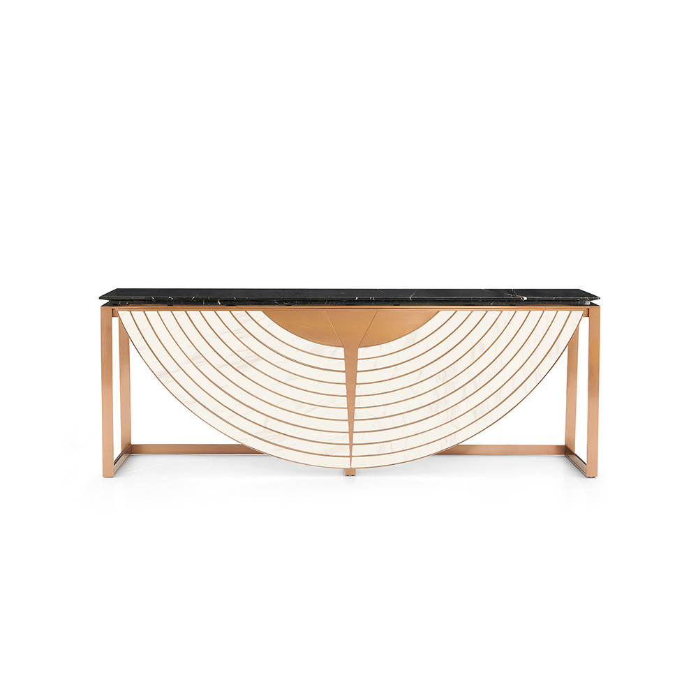 — Эстетика и стиль: Изящные линии и изысканные детали оформлены мрамором, который добавляет консоли уникальный шарм. Это не просто мебель, а настоящее произведение искусства, которое станет центральным элементом любого интерьера.