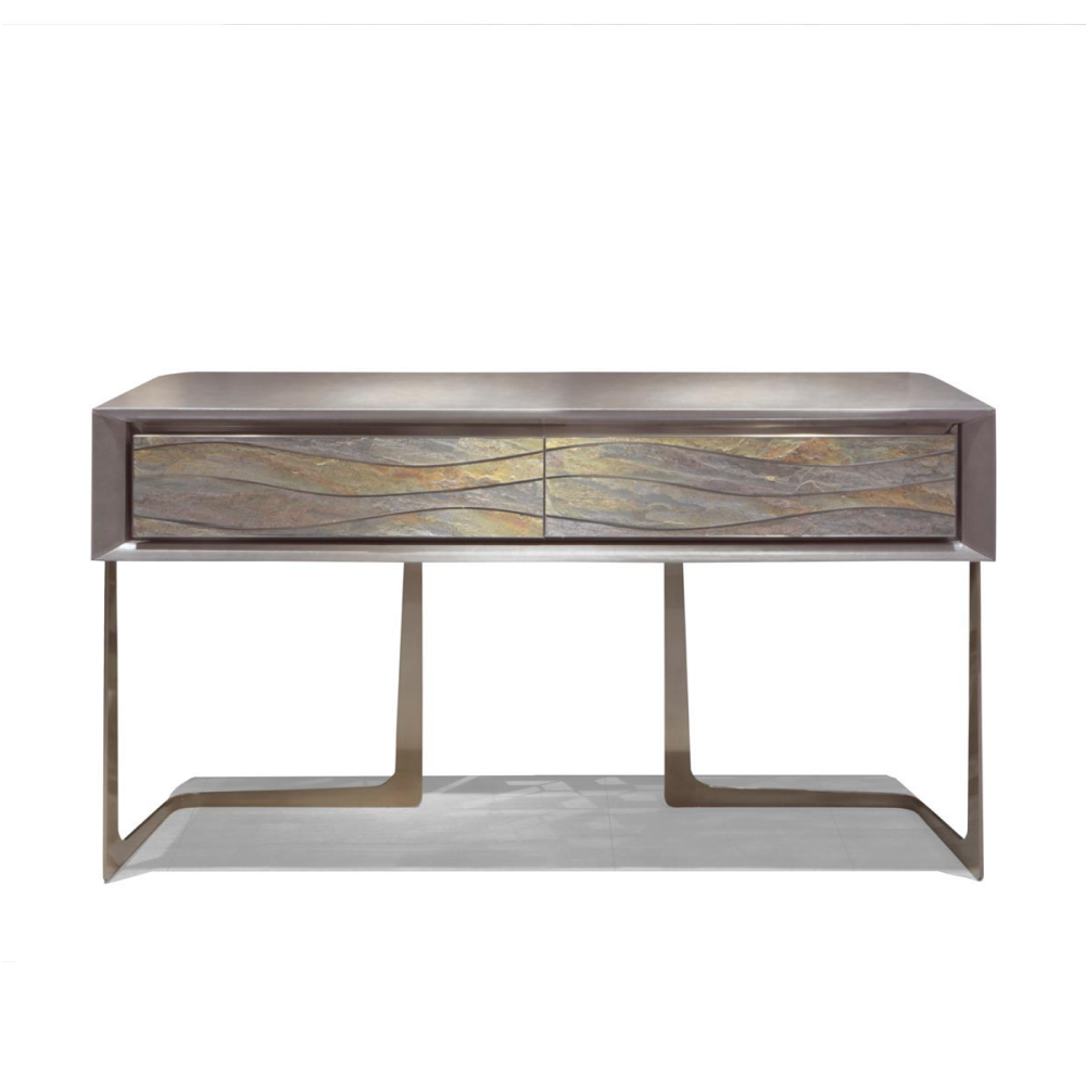 Ножки консоли из нержавеющей стали с матовой отделкой в нежном цвете розового золота добавляют завершенности и изящества в весь дизайн. Они обеспечивают надежную поддержку и устойчивость, позволяя вам гордо размещать на консоли любимые аксессуары, книги или декоративные элементы.