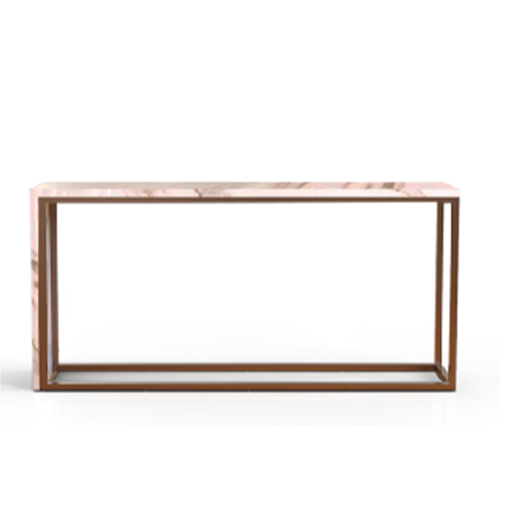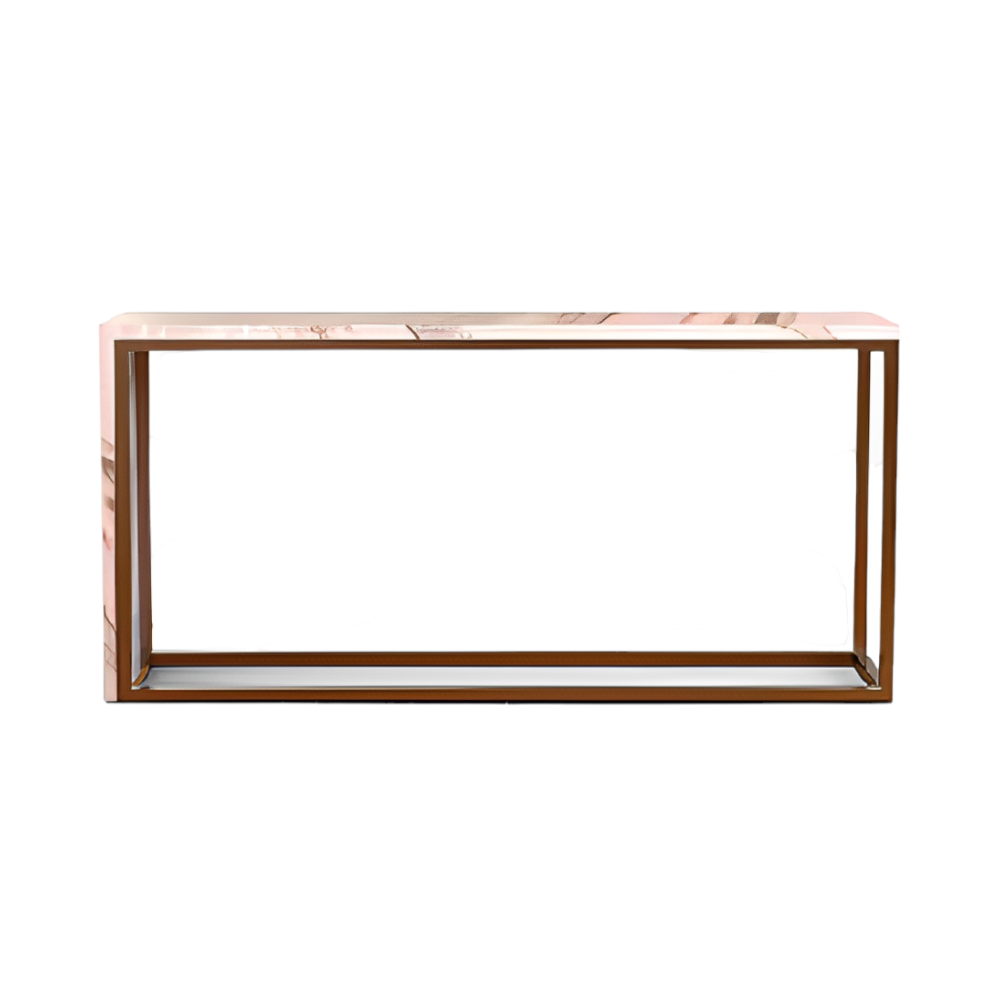 — Финиш из нержавеющей стали и матового розового золота: Стильные ножки из нержавеющей стали с матовым покрытием в оттенке розового золота добавляют современный штрих и отлично сочетаются с мраморной столешницей, создавая гармоничный общий вид.