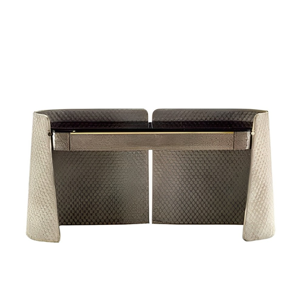 Консоль обладает привлекательной отделкой из мягкой микрофибры, придающей ей роскошный вид и тактильное удовольствие. Удобный размер идеально впишется в любую прихожую, гостиную или офис, добавляя функциональности и стиля.