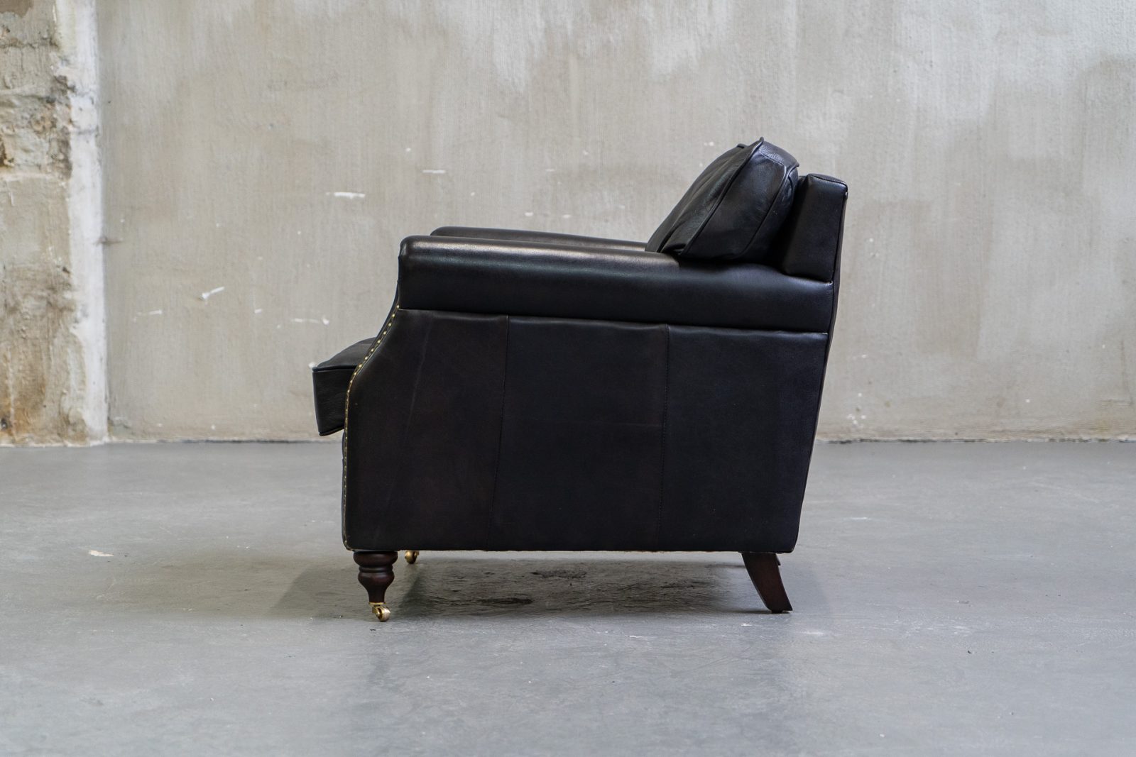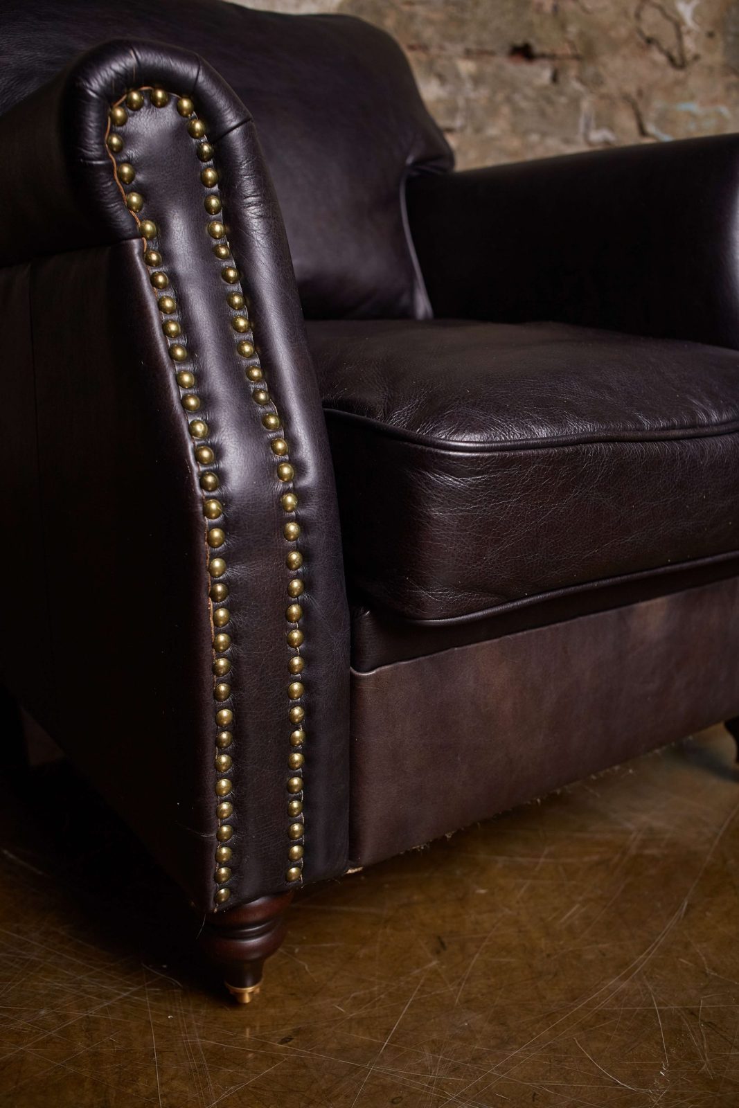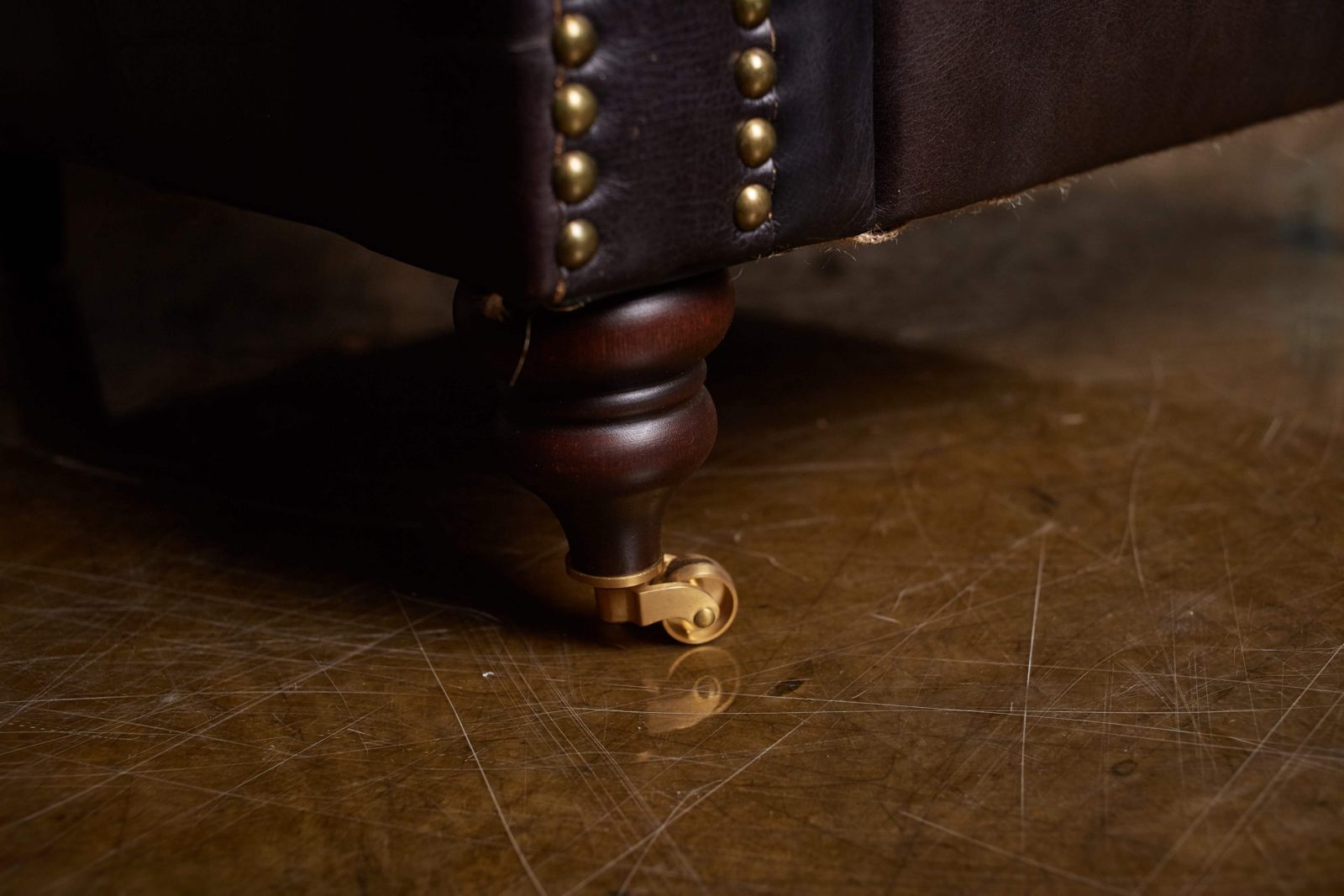 Сочетание каркаса из лиственницы и крепких массивных деревянных ножек обеспечивает надежность и устойчивость, в то время как премиальная обивка из коровьей кожи top grain придаст вашему пространству роскошный вид. Каждая деталь выполнена с безупречным вниманием к качеству — даже латунные гвоздики используются для отделки, добавляя изысканности и характерного шарма.