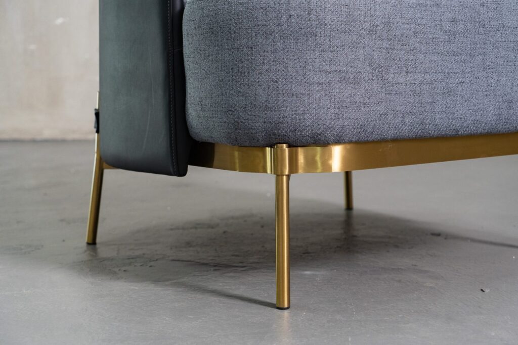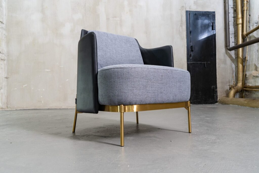 — Стильное основание: Завораживающая нержавеющая сталь золотого цвета придаёт креслу Gatsby шик и изысканность, одновременно создавая ощущение легкости и современности.