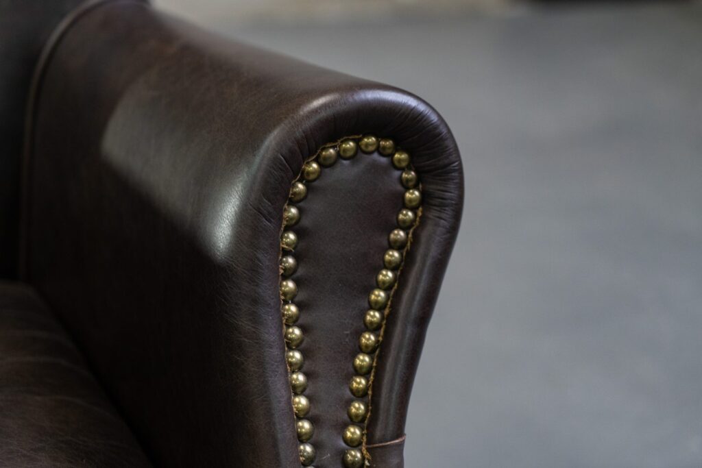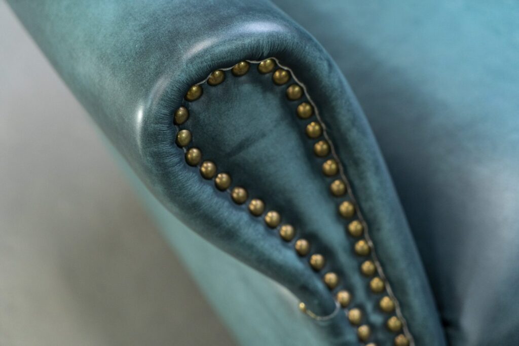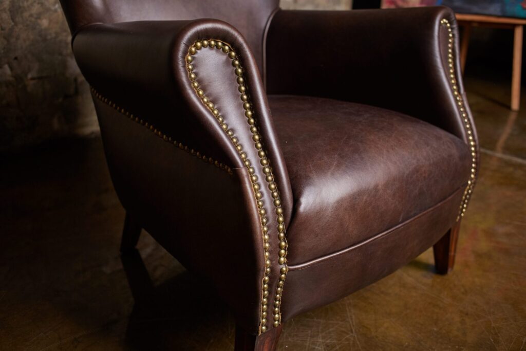 — Качество материалов: Каркас кресла изготовлен из лиственницы, что обеспечивает ему надежность, а ножки выполнены из массива дерева, подчеркивая натуральную красоту и стойкость к повреждениям. Обивка из коровьей кожи Top Grain не только приятна на ощупь, но и устойчива к износу, что гарантирует долгий срок службы этого изделия.