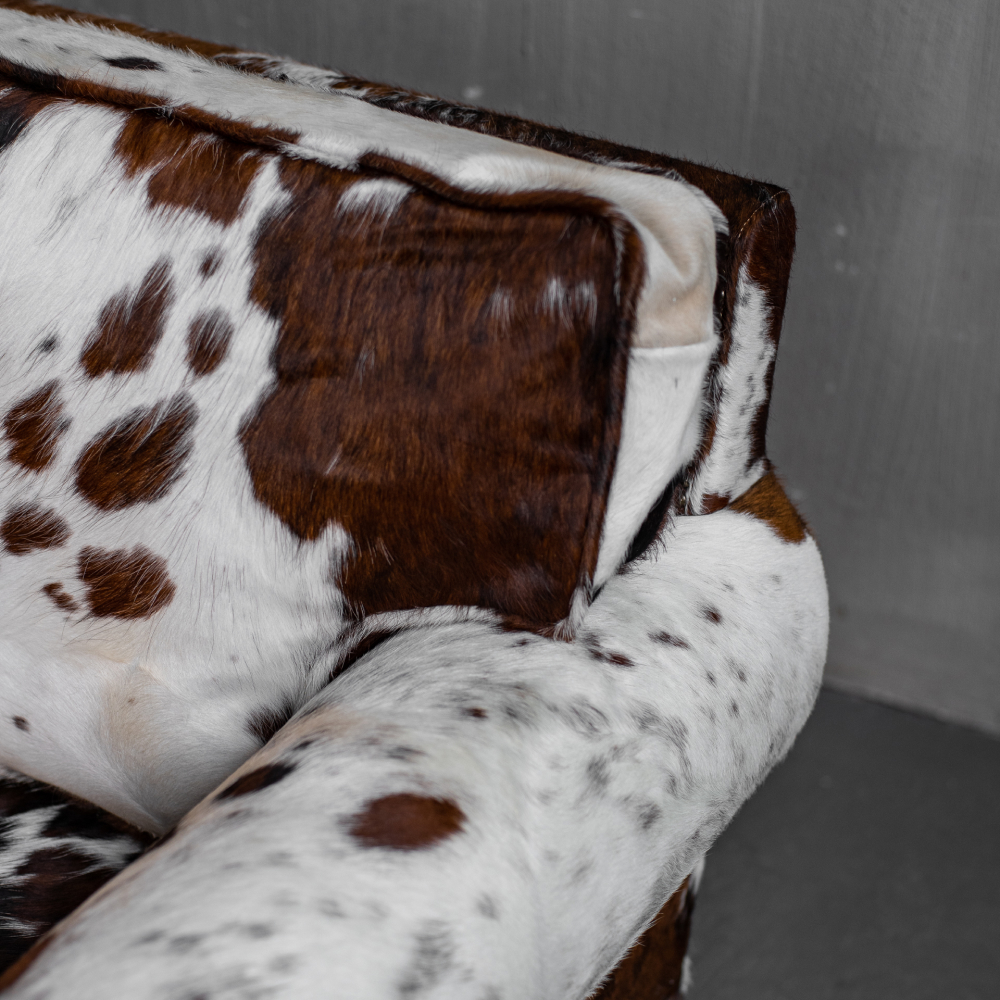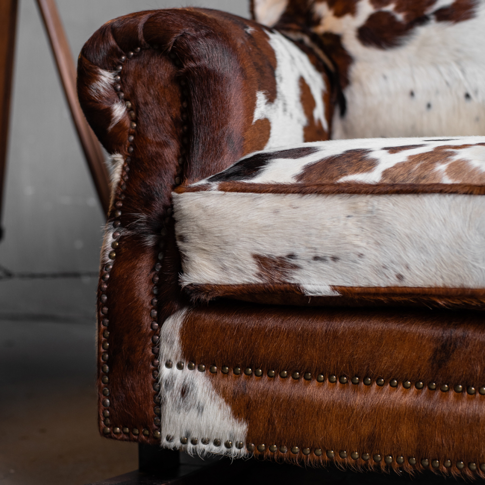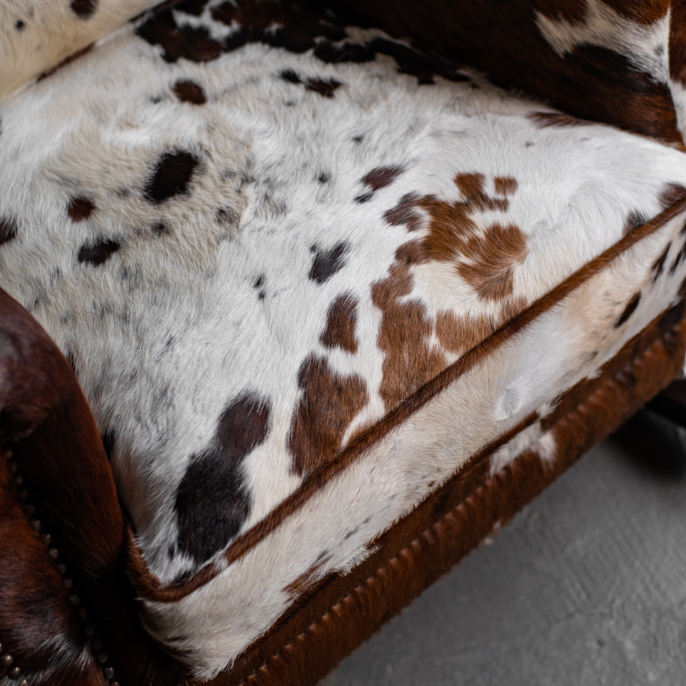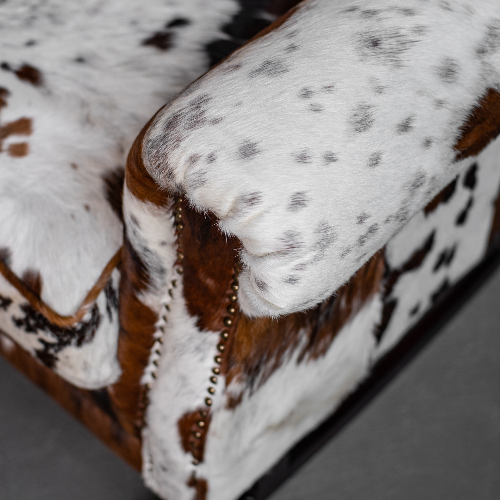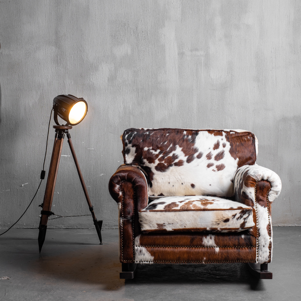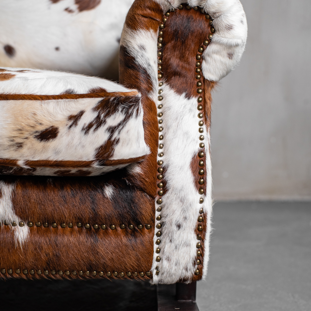 — Эстетика и уют: Обивка из коровьего меха придаёт креслу уникальный, стильный вид, который прекрасно впишется в любой интерьер, от современного до классического.