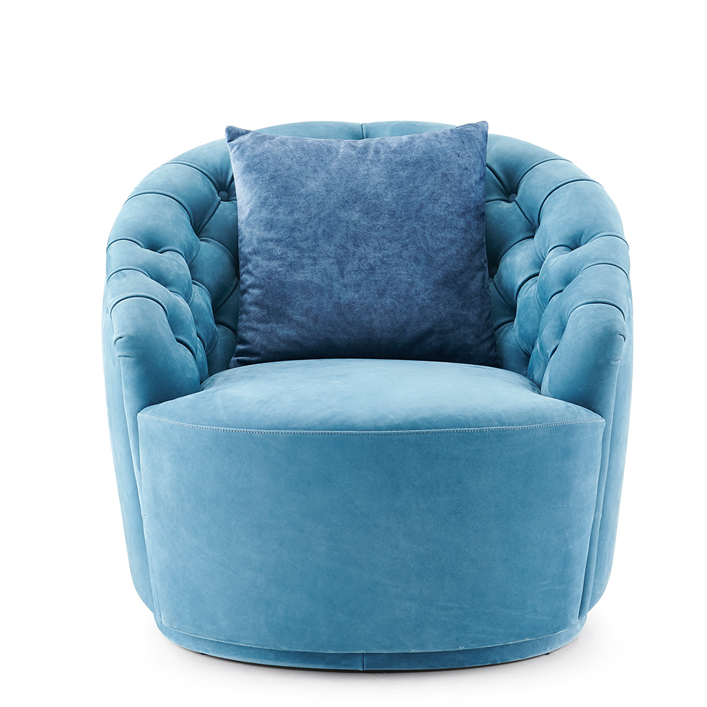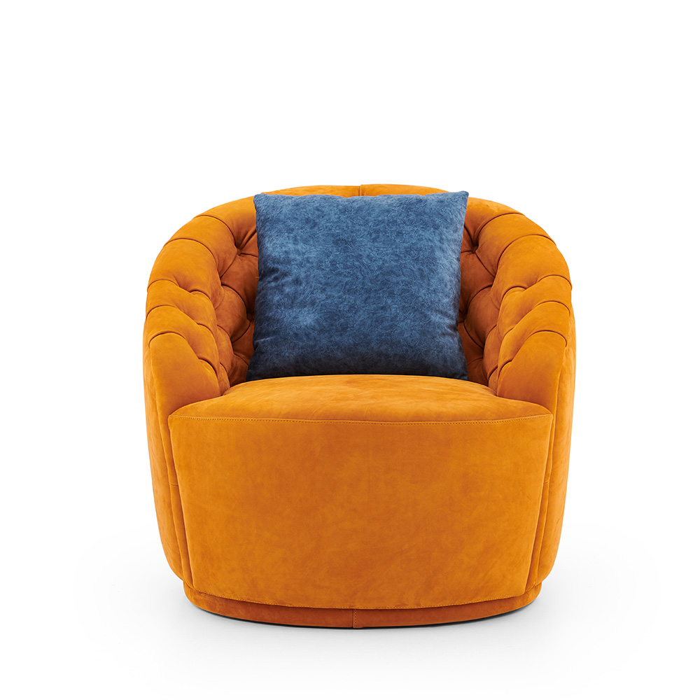 — Стильный внешний вид: Круглая форма кресла и широкий выбор отделки делают его универсальным элементом декора, который легко впишется в любую обстановку — от современных до классических интерьеров.