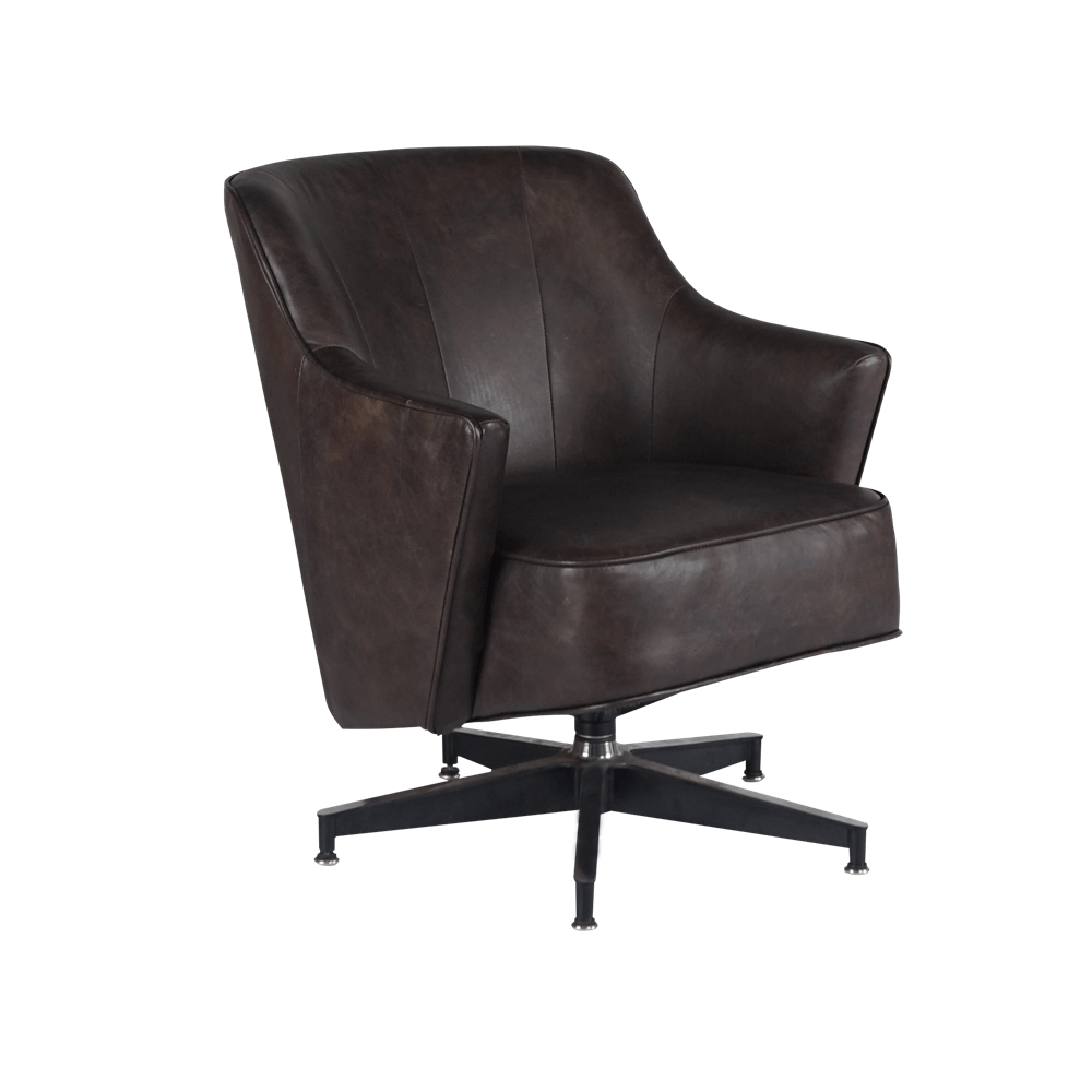 Изготовленное из высококачественной кожи Top grain, кресло является образцом долговечности и роскоши. Удобные деревянные подлокотники добавляют теплоты и естественности, в то время как прочное металлическое основание обеспечивает надежность и устойчивость. Благодаря поворотному механизму, это кресло легко перемещается, что позволяет вам оставаться мобильным и активно взаимодействовать с окружающей обстановкой.