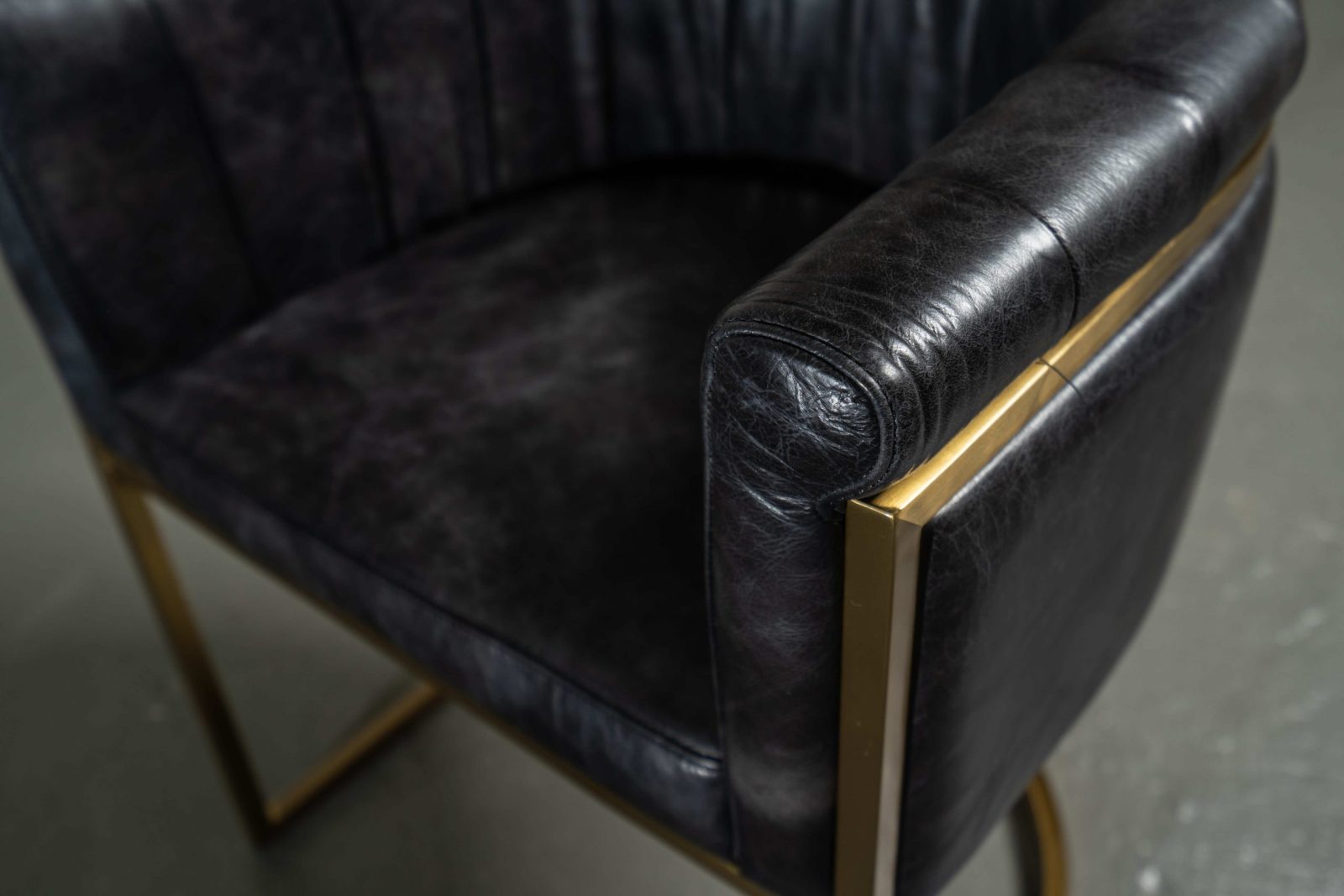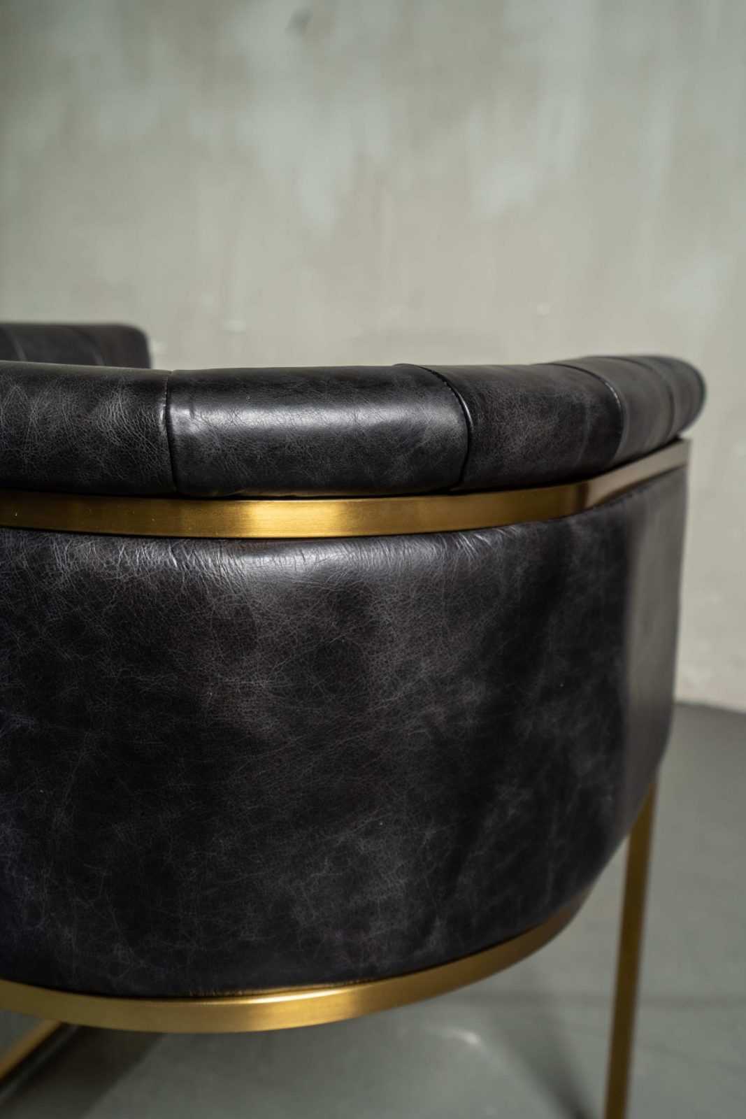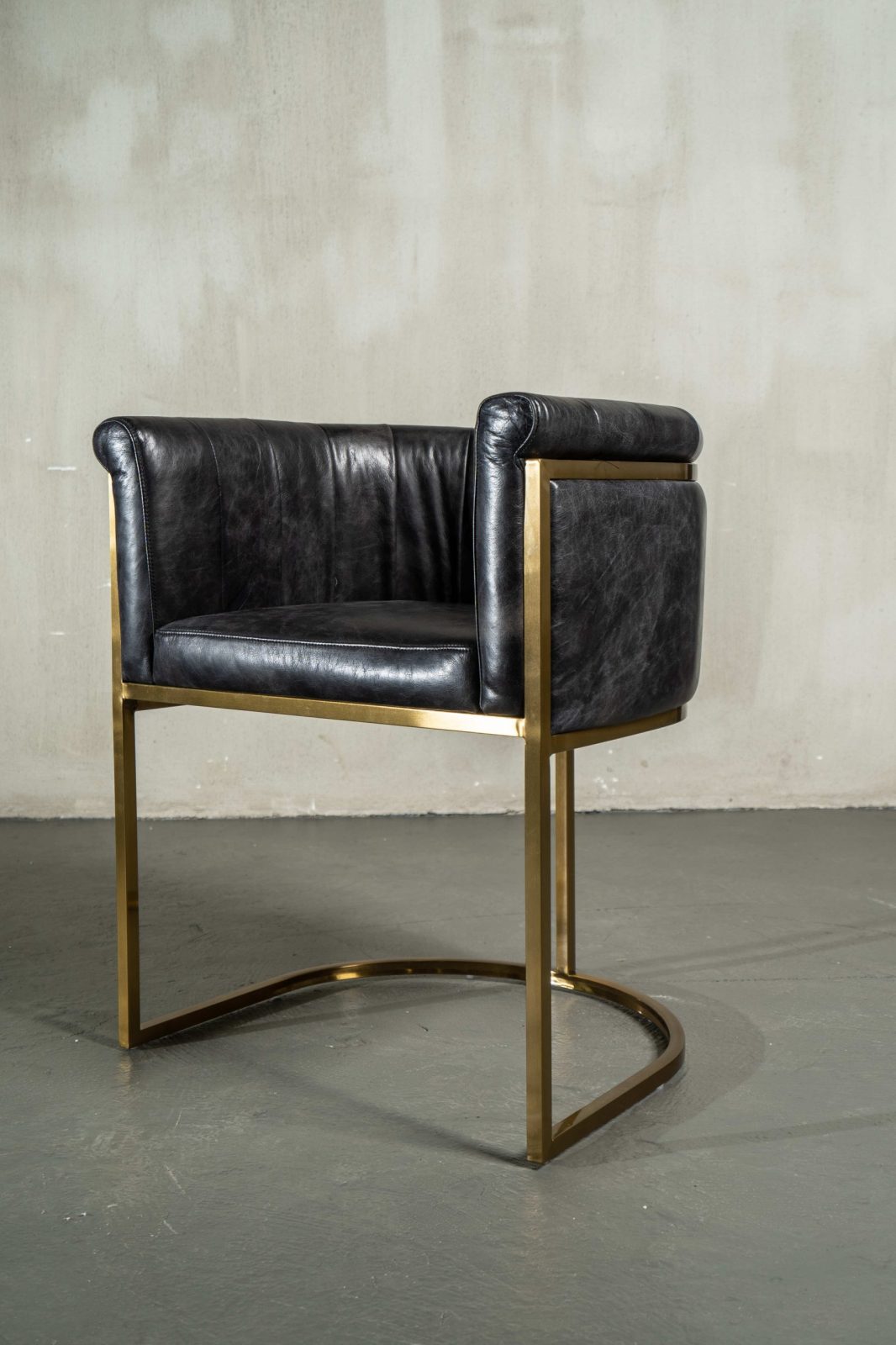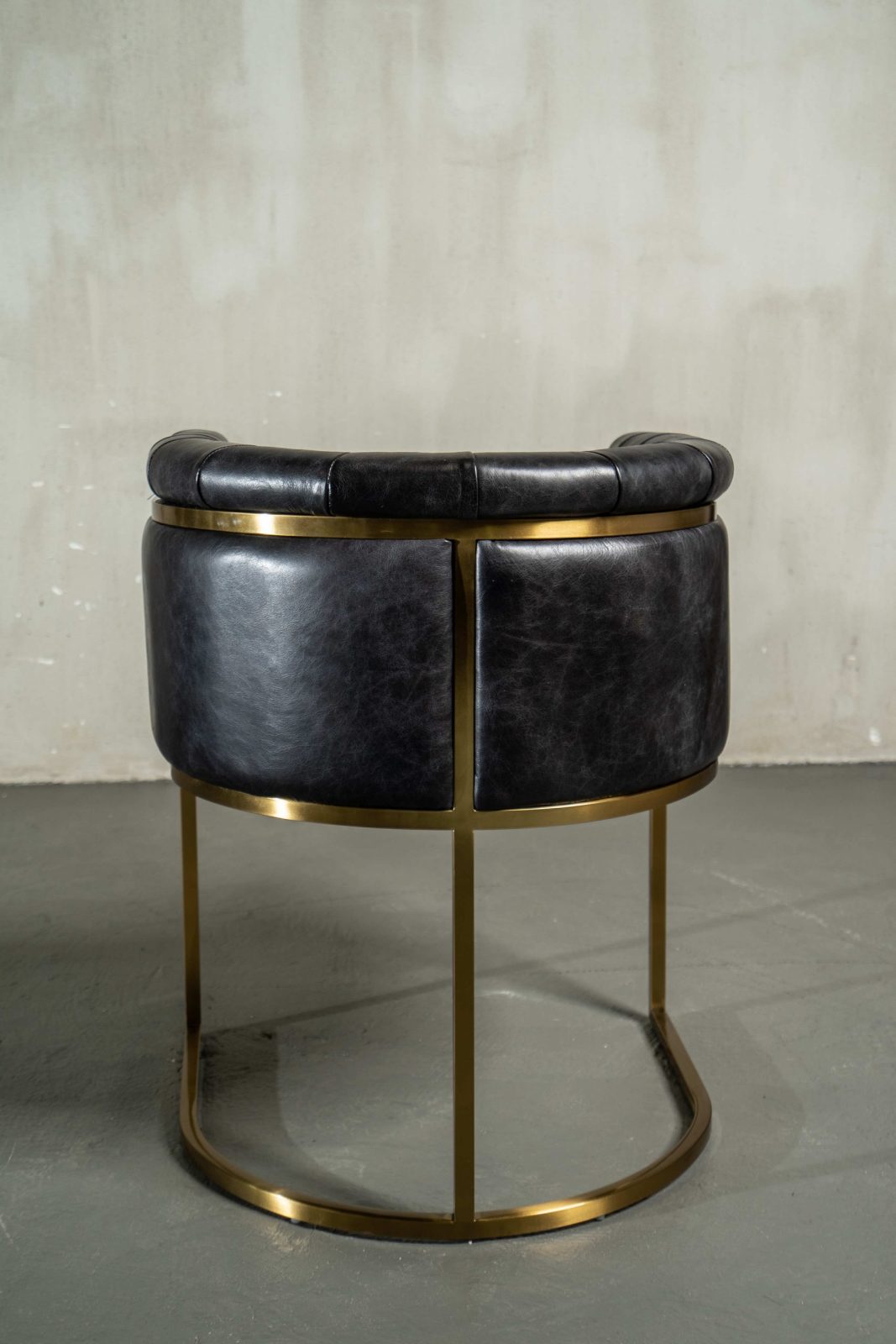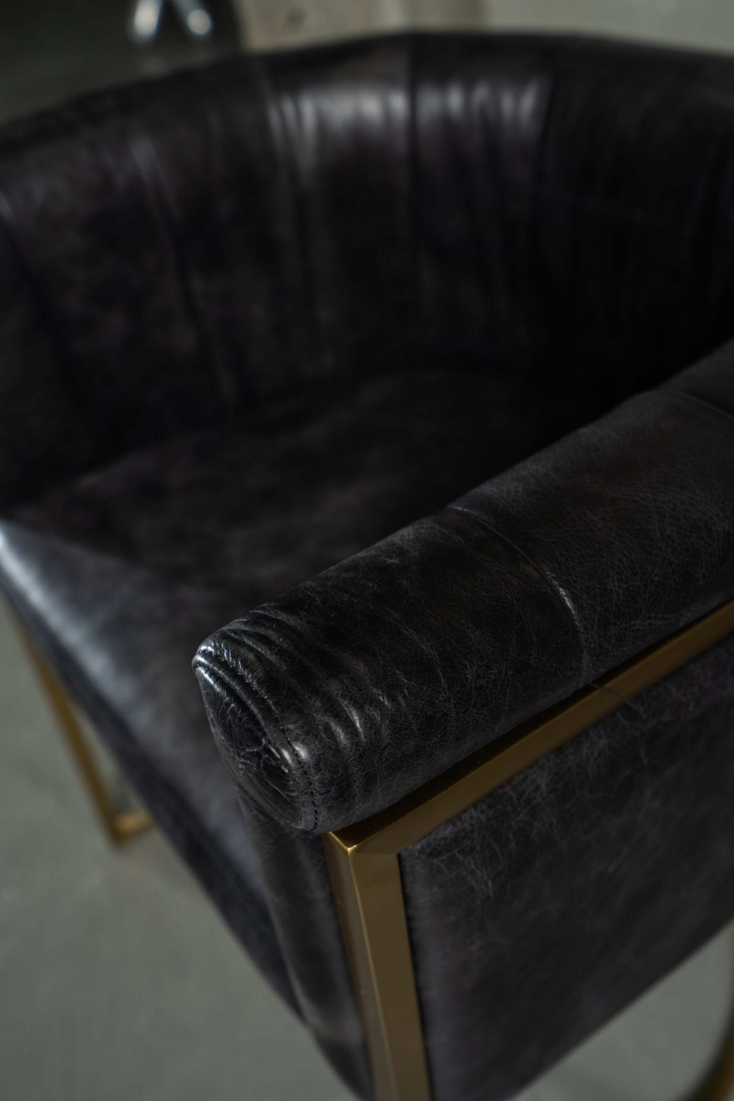 Изготовленное с любовью и вниманием к деталям, кресло оснащено прочным каркасом из металлических ножек, выполненных из нержавеющей стали золотого цвета, что придает ему нотку роскоши и элегантности. Обивка из коровьей кожи top grain излучает не только красоту, но и долговечность, гарантируя, что ваше кресло будет радовать глаз на протяжении многих лет.