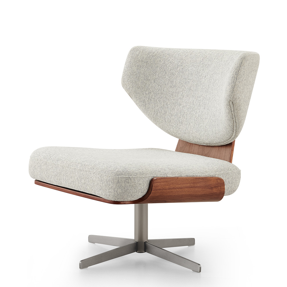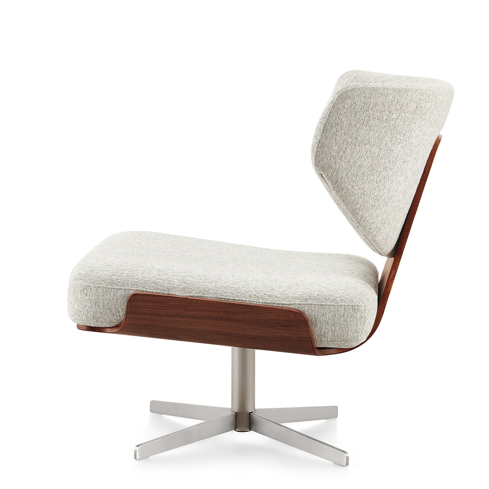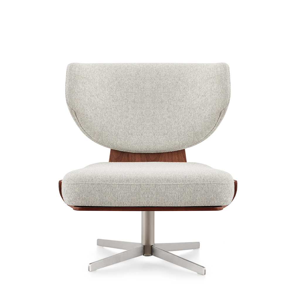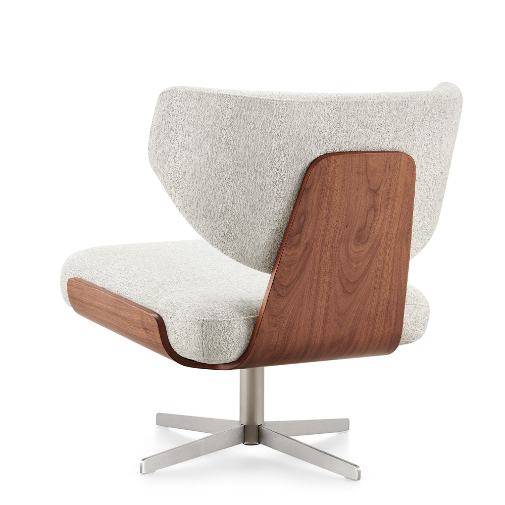 Изготавливаемое из тщательно подобранных материалов, таких как пенополиуретан и гнутое дерево с ясеневым шпоном, кресло наделено прочностью и долговечностью. Верхний слой выполнен из стильной ткани, добавляя дополнительный комфорт и роскошь. Основание из нержавеющей стали гарантирует надежность и устойчивость, а эффектная крестовина придает креслу ненавязчивый, но заметный шарм.