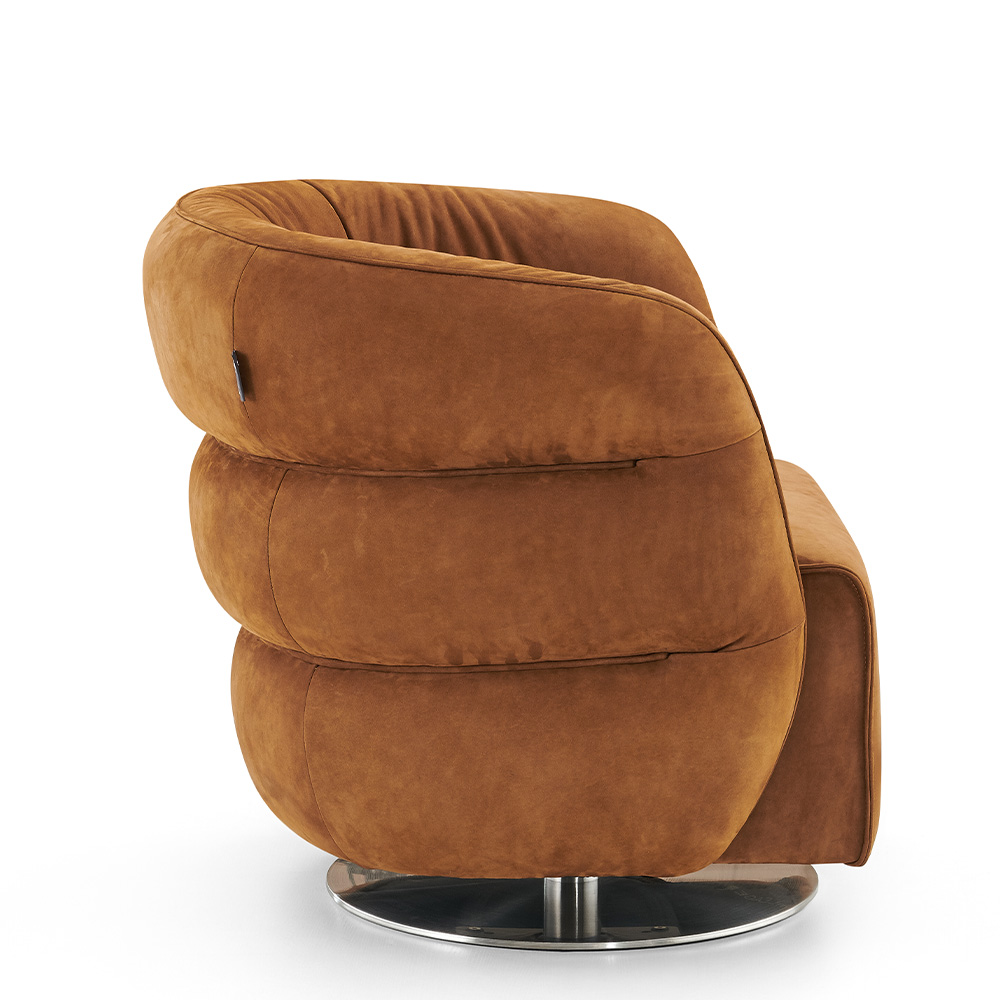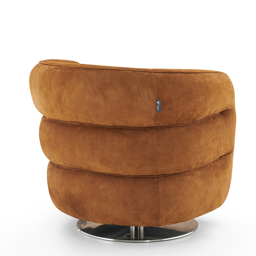 Объемная форма и прочный каркас из массива сосны, дополненный элементами из нержавеющей стали, обеспечивают не только стильный вид, но и поддержку, которую вы сможете оценить при первых же мгновениях уюта. Кожаные детали придают креслу изысканности, делая его отличным выбором как для современных, так и для классических интерьеров.