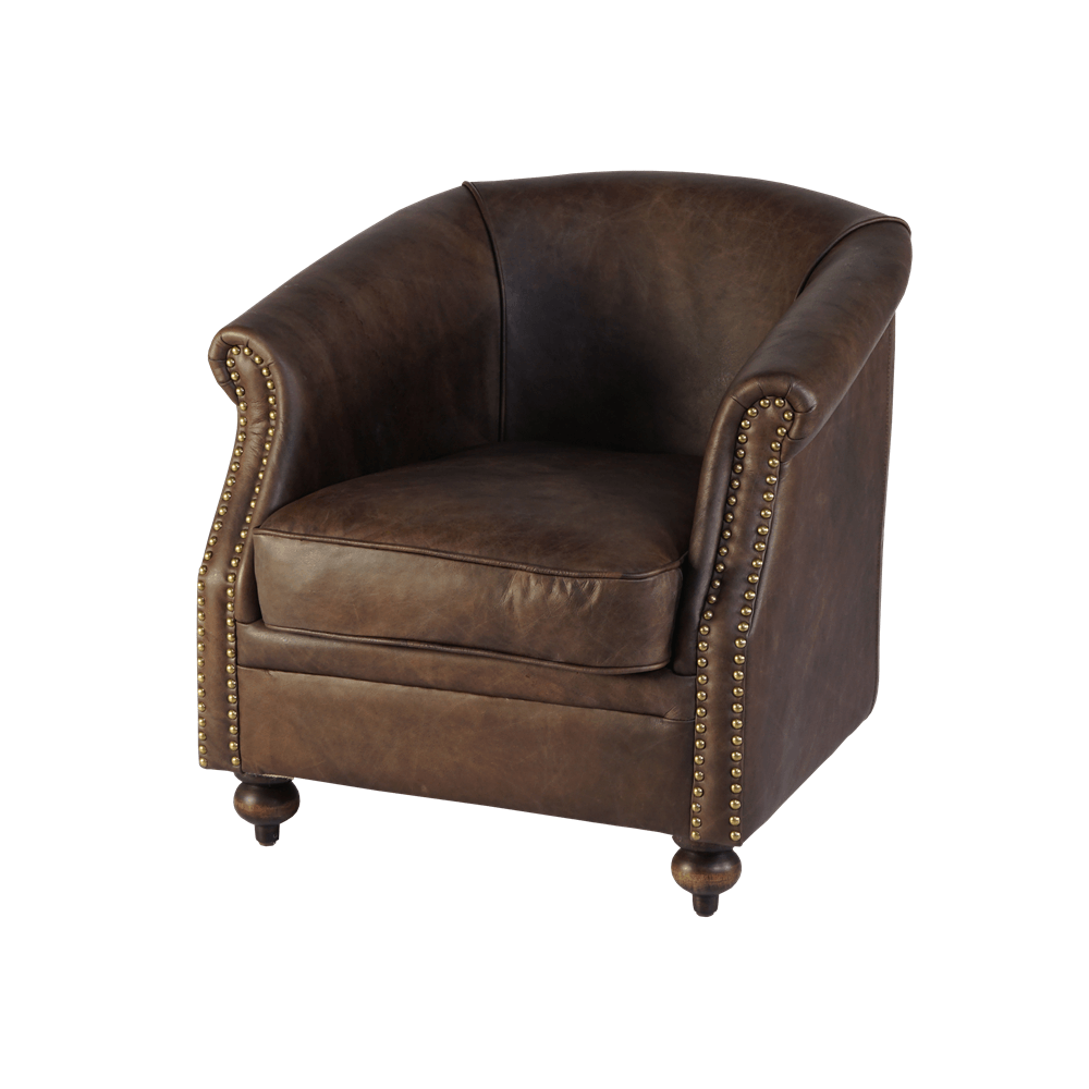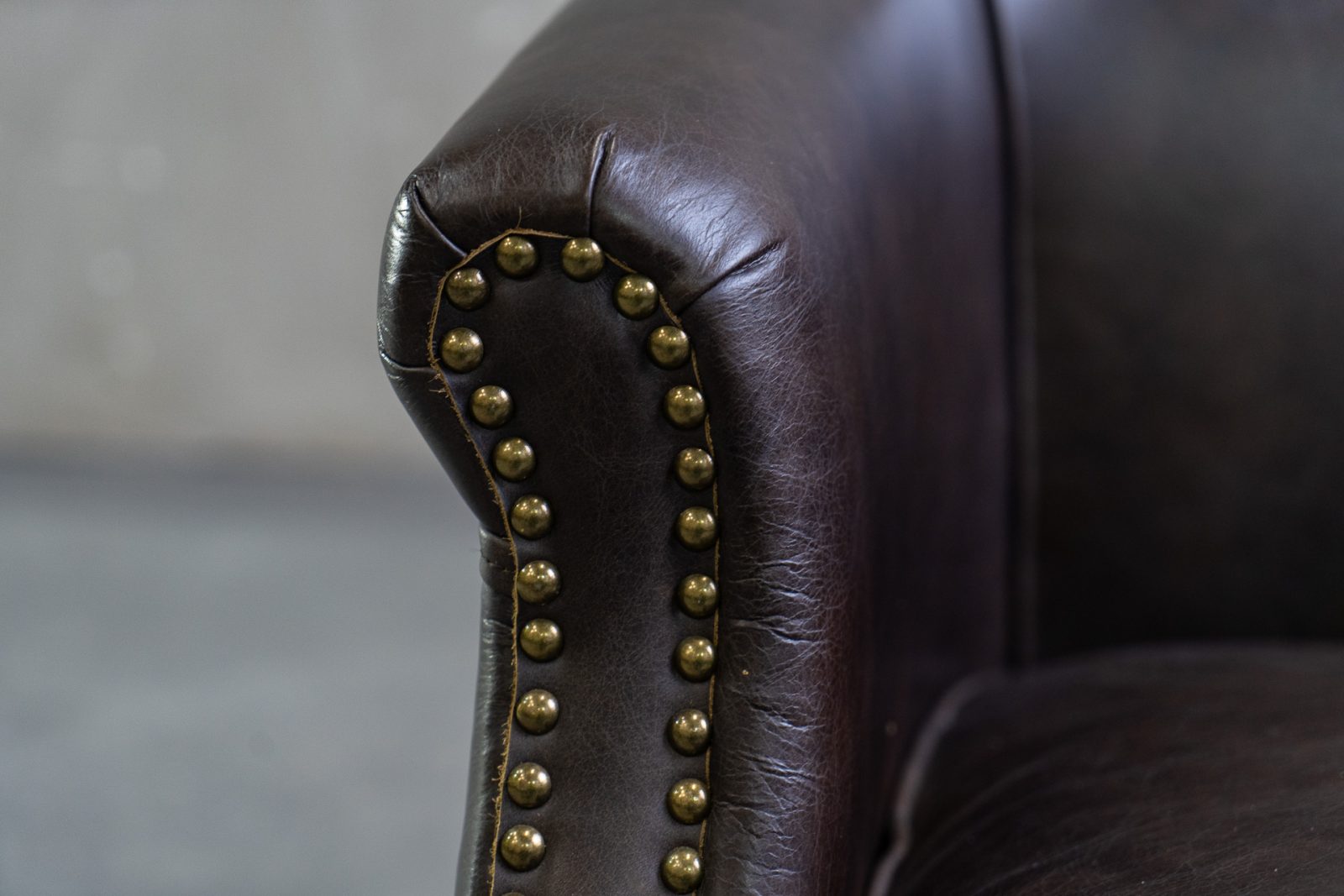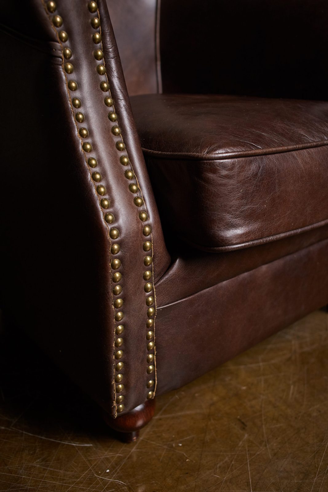 Созданное с вниманием к деталям, кресло имеет прочный каркас из лиственницы и ножки из массива дерева, что обеспечивает долговечность и устойчивость. Обивка из высококачественной коровьей кожи top grain не только приятна на ощупь, но и придаёт изделию стильный вид. Латунные гвозди вдоль швов добавляют нотку индустриального шика, делая это кресло не просто мебелью, а настоящим произведением искусства.