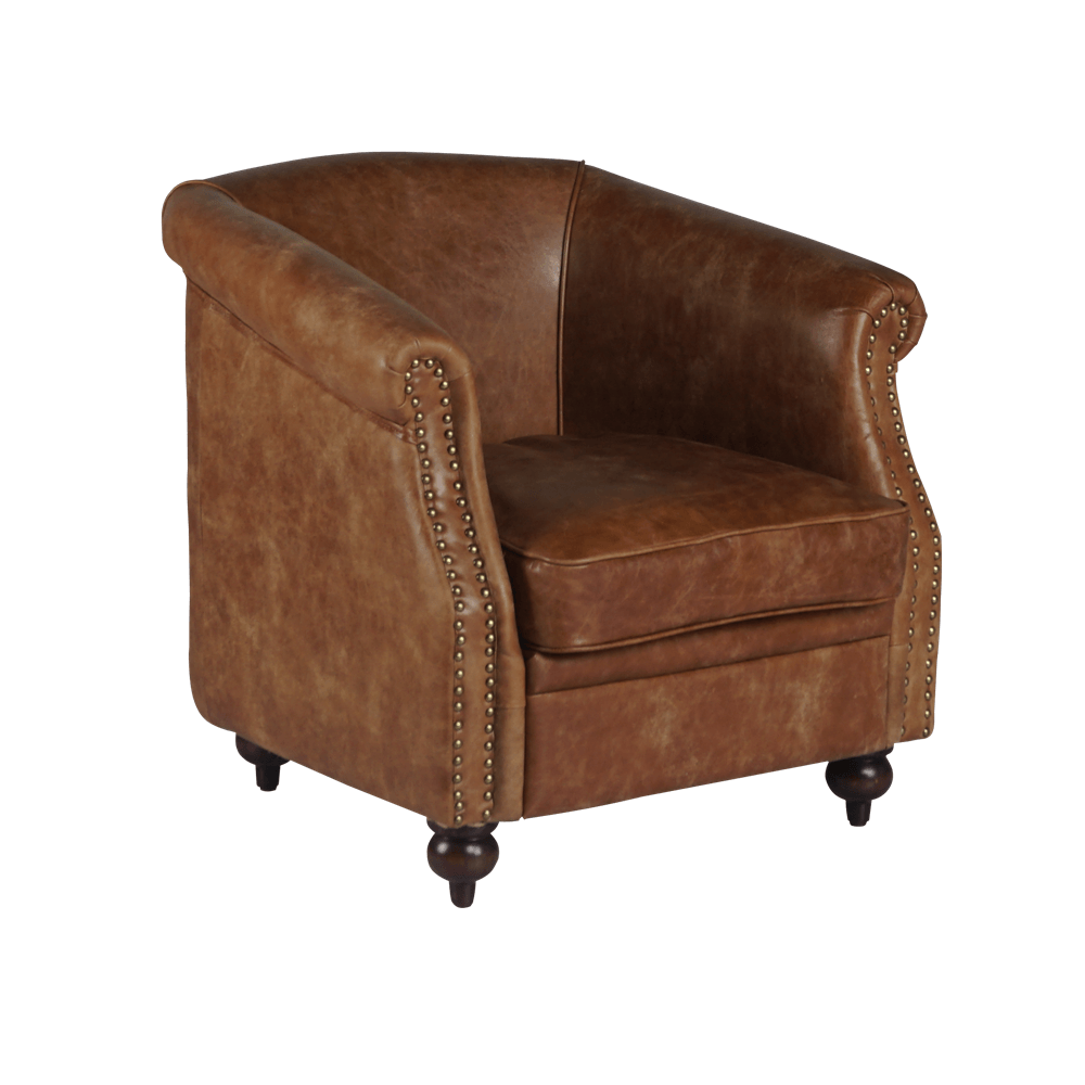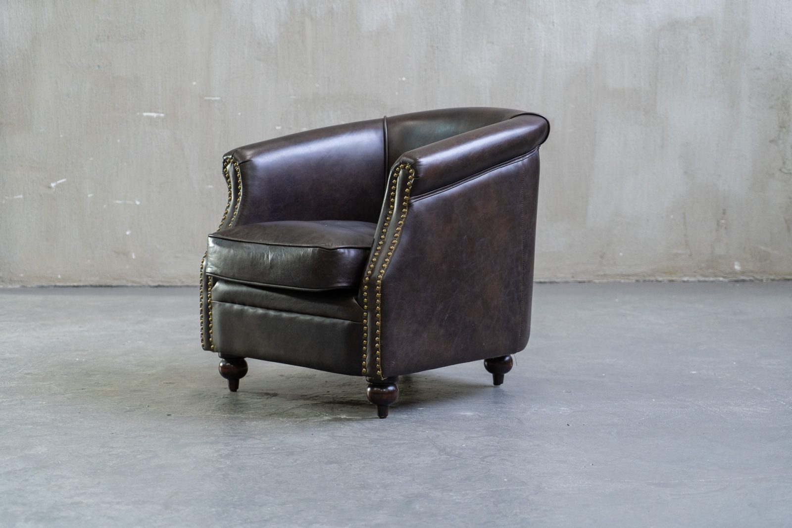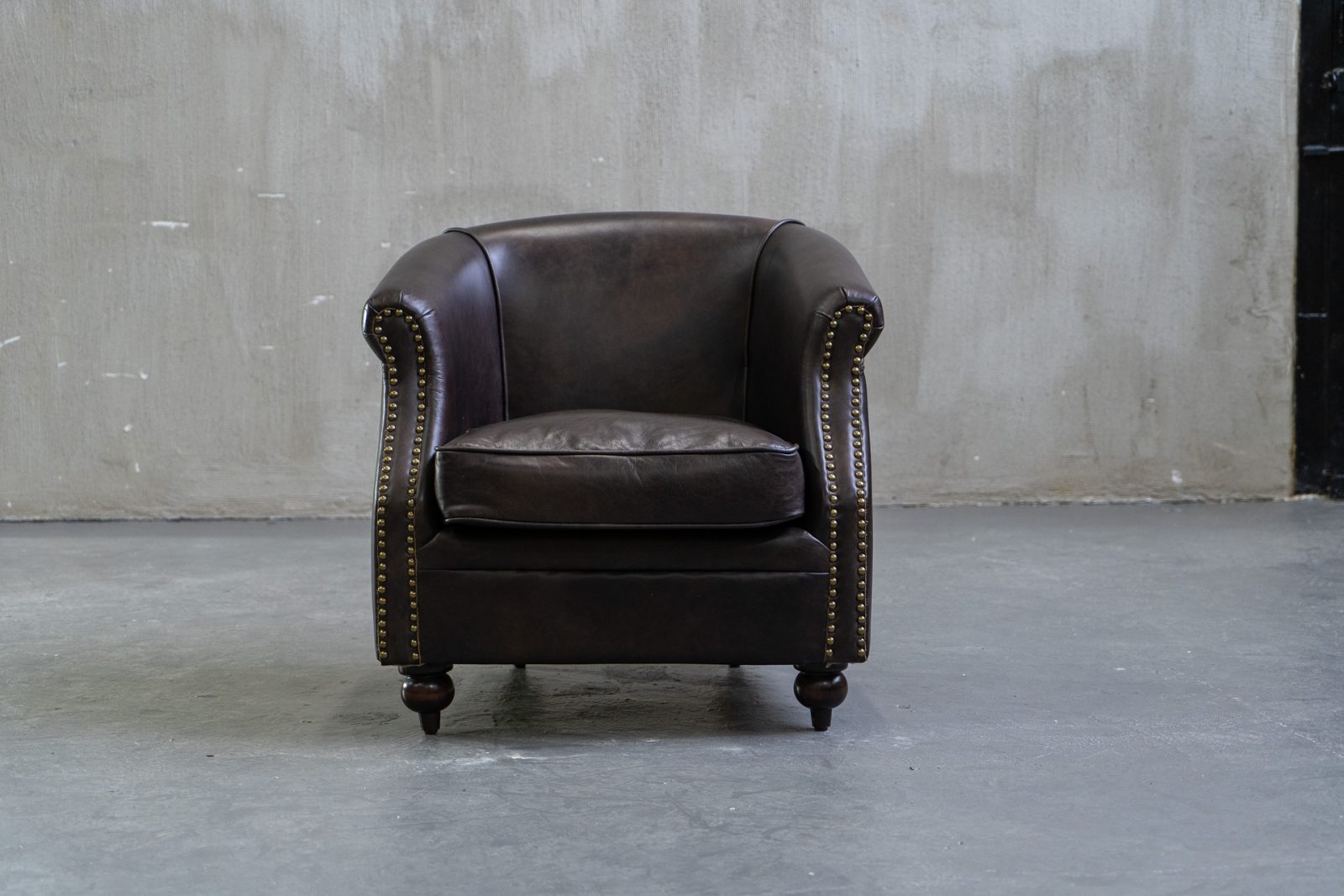 Созданное с вниманием к деталям, кресло имеет прочный каркас из лиственницы и ножки из массива дерева, что обеспечивает долговечность и устойчивость. Обивка из высококачественной коровьей кожи top grain не только приятна на ощупь, но и придаёт изделию стильный вид. Латунные гвозди вдоль швов добавляют нотку индустриального шика, делая это кресло не просто мебелью, а настоящим произведением искусства.