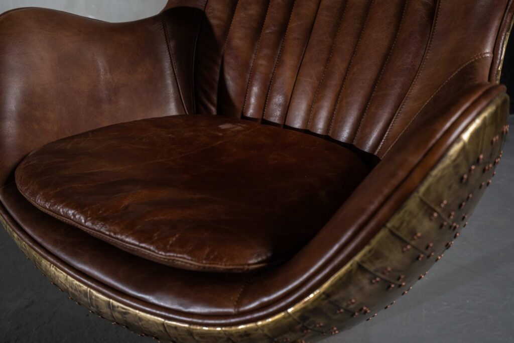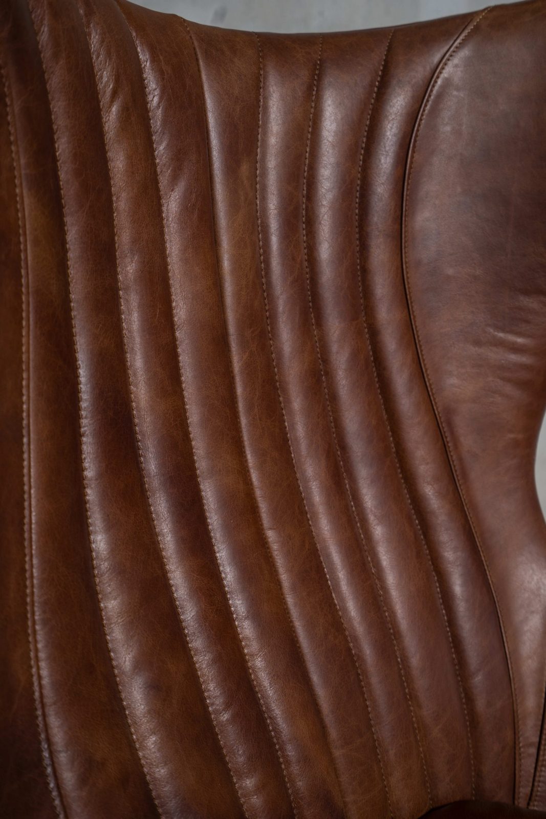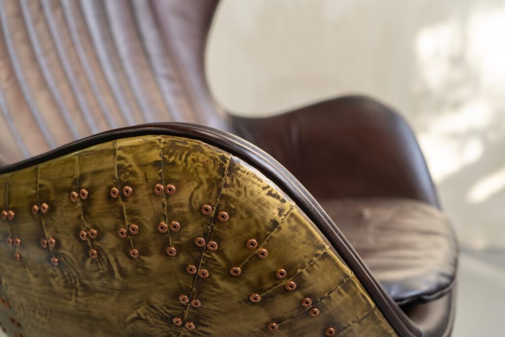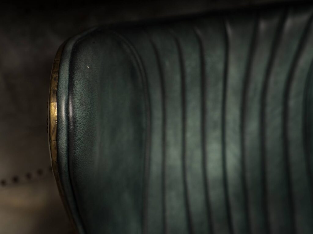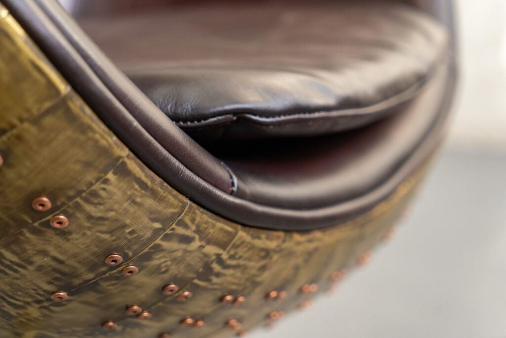 Изготовленное с использованием прочного металлического каркаса и надежной нержавеющей стали, это кресло не только выглядит шикарно, но и превосходно справляется с ежедневными нагрузками. Латунная отделка добавляет шарма и элегантности, а обивка из коровьей кожи Top Grain обеспечивает роскошное ощущение при каждом прикосновении.