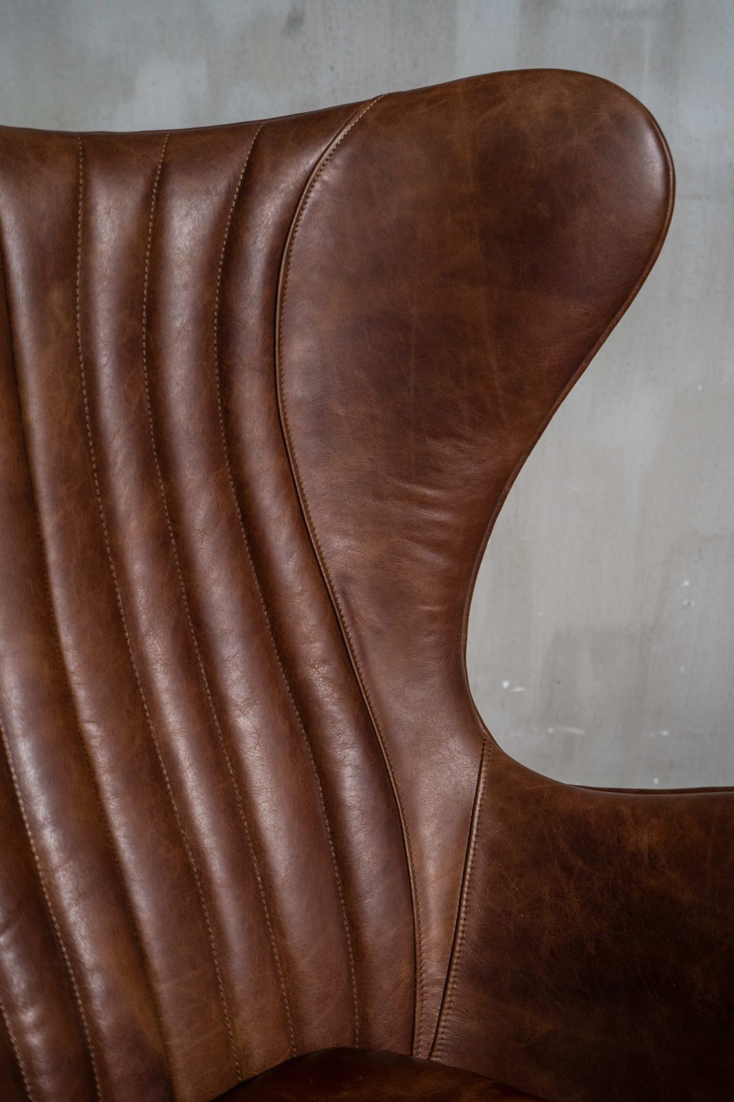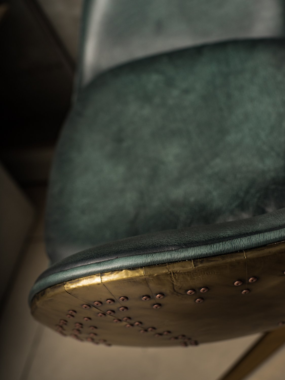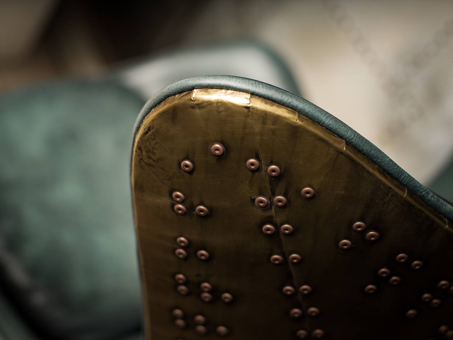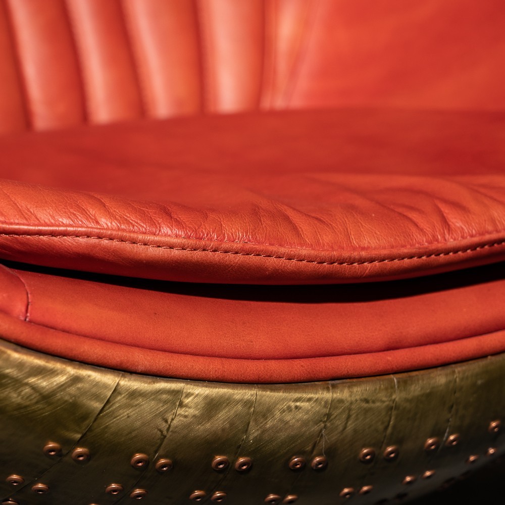 Изготовленное с использованием прочного металлического каркаса и надежной нержавеющей стали, это кресло не только выглядит шикарно, но и превосходно справляется с ежедневными нагрузками. Латунная отделка добавляет шарма и элегантности, а обивка из коровьей кожи Top Grain обеспечивает роскошное ощущение при каждом прикосновении.