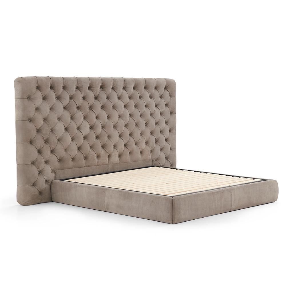 — Изысканная обивка: Кровать обита натуральной кожей А+, что не только дарит ей роскошный вид, но и обеспечивает долговечность и легкий уход. Доступна также в других вариантах натуральной кожи, позволяя вам выбрать идеальный оттенок для вашего интерьера.