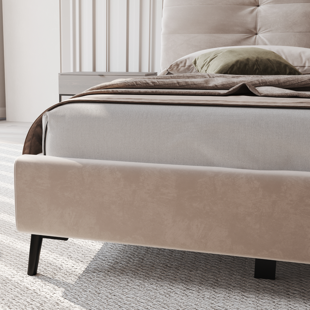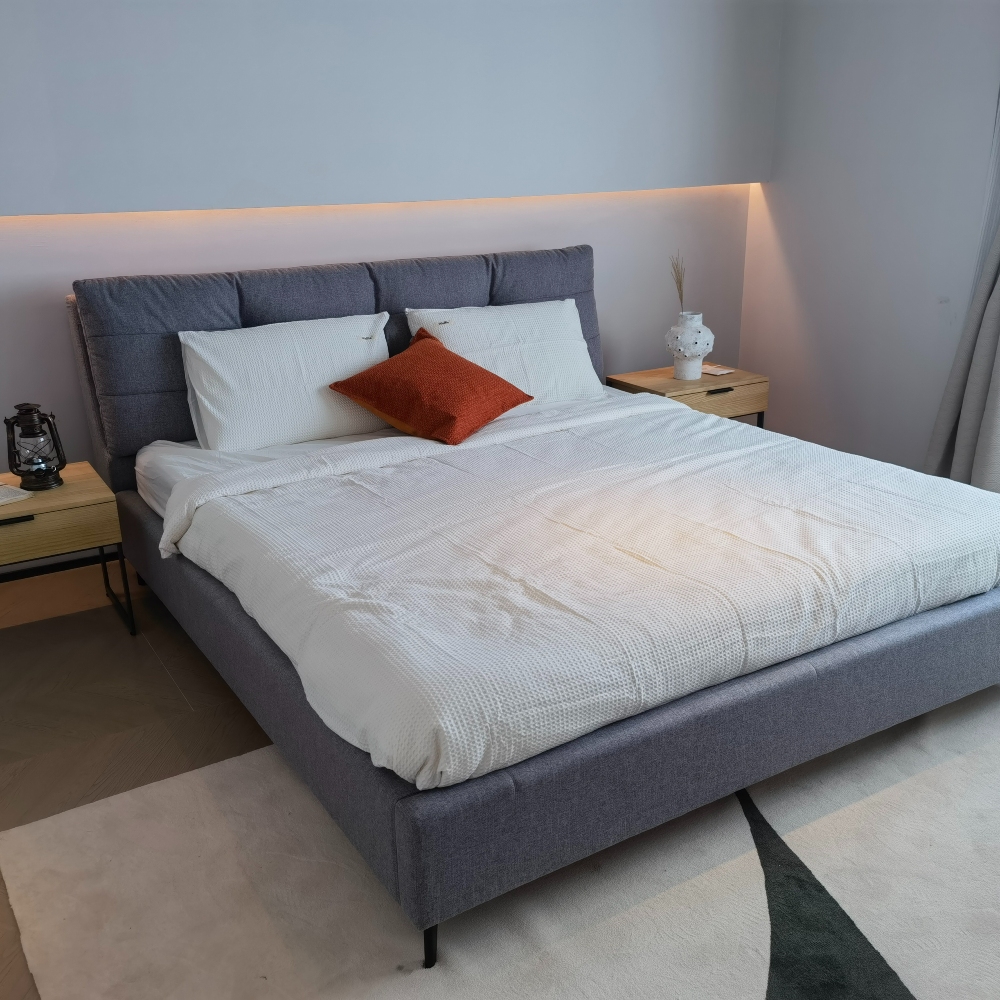 Изготовленная с использованием высококачественных материалов, кровать имеет прочный каркас из ребер класса B, который гарантирует долгий срок службы и надежность. Премиальный пенополиуретан создает мягкость, позволяя вам наслаждаться каждым мгновением отдыха. А уникальное изголовье в обивке из ткани класса А+ добавляет изящества и теплоты, приглашающее вас расслабиться после долгого дня.