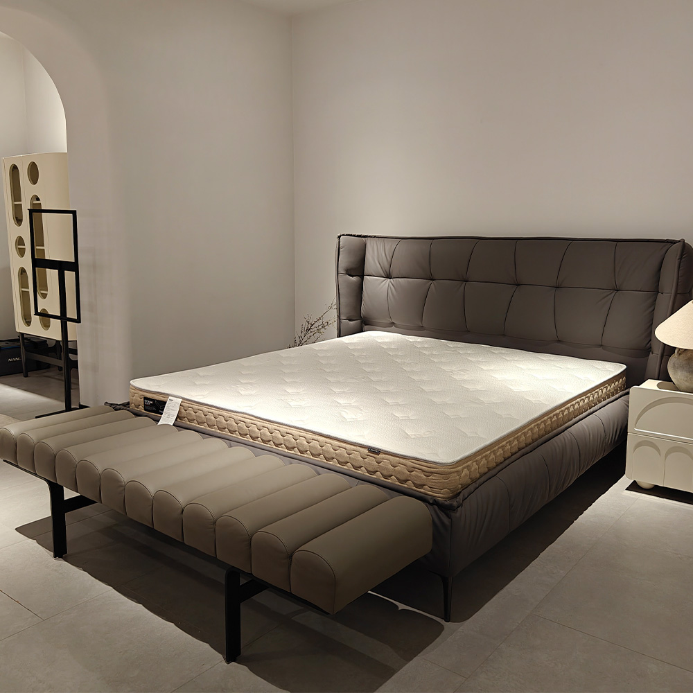 — Надежный каркас: Структура кровати изготовлена из ребер класса B, что обеспечивает долговечность и устойчивость. Пенополиуретан и углеродистая сталь гарантируют прочность и надежность на годы вперед.