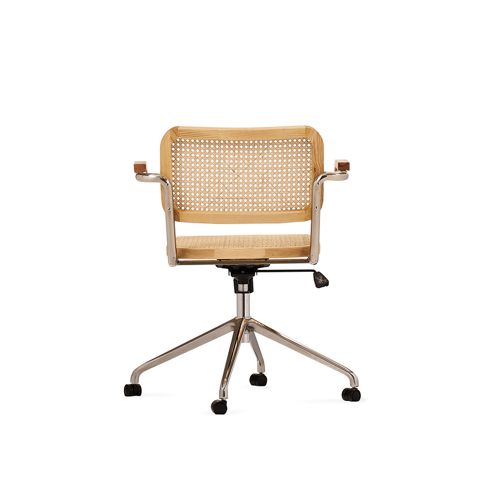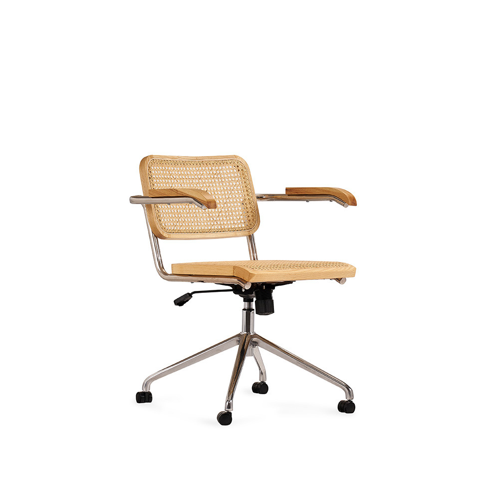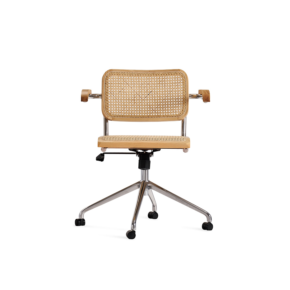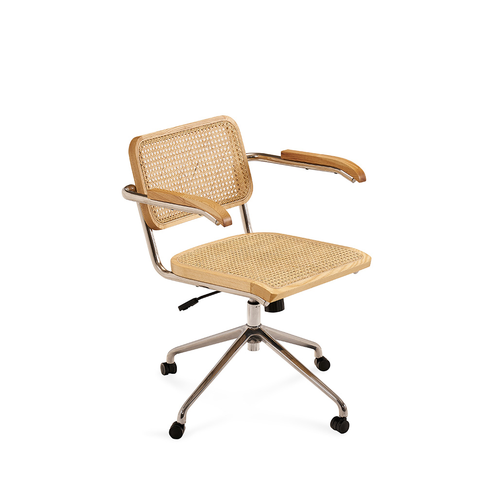 Придайте вашему рабочему пространству элегантный и утонченный вид с офисным креслом Corporate, выполненным с акцентом на комфорт и стиль. Это вращающееся кресло идеально сочетает в себе прочность и элегантность, благодаря использованию высококачественных материалов, таких как массив ясеня и ротанг, а также прочной углеродистой стали.