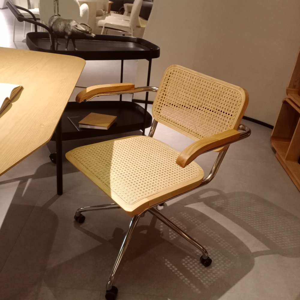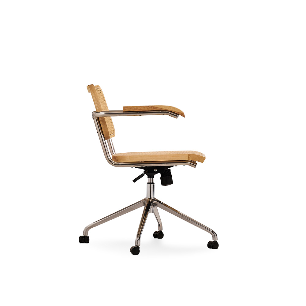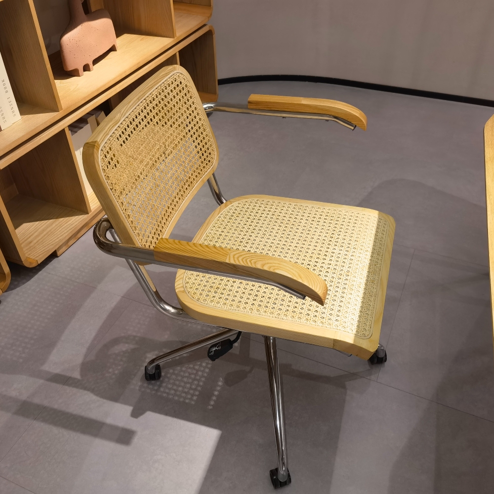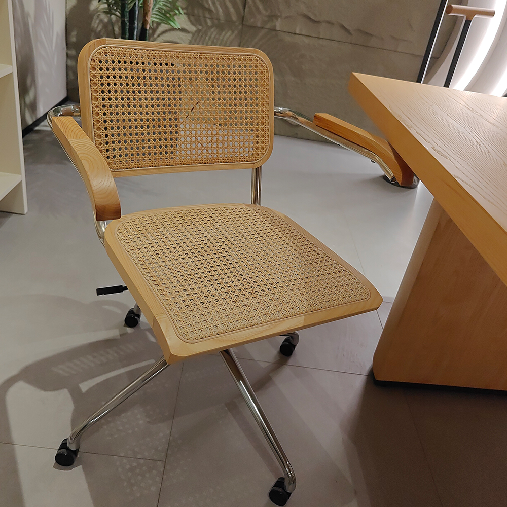 Придайте вашему рабочему пространству элегантный и утонченный вид с офисным креслом Corporate, выполненным с акцентом на комфорт и стиль. Это вращающееся кресло идеально сочетает в себе прочность и элегантность, благодаря использованию высококачественных материалов, таких как массив ясеня и ротанг, а также прочной углеродистой стали.