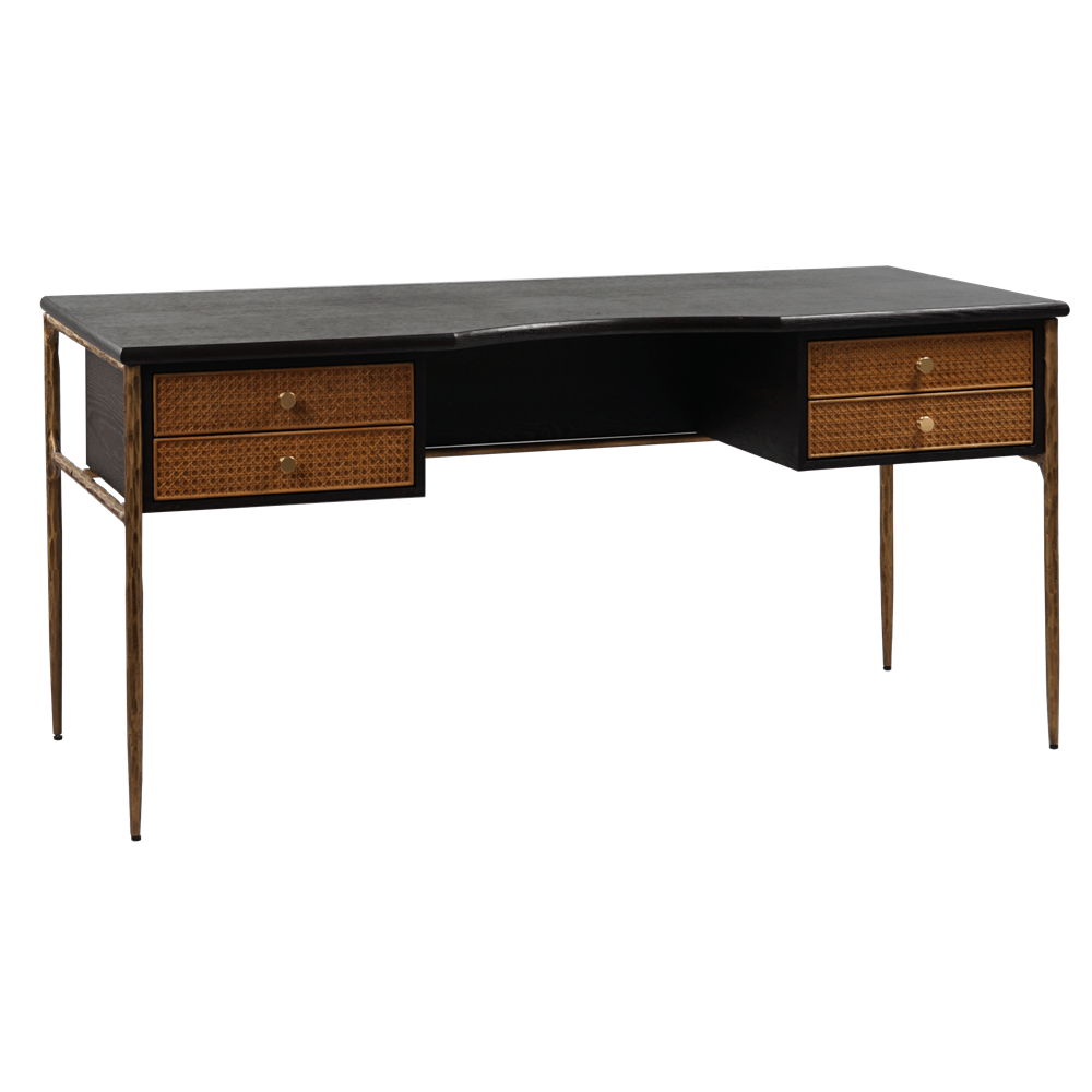 Представляем вашему вниманию офисный стол Tropics Rattan 4 Boxes от американской фабрики Four Hands, который идеально впишется в интерьер вашего кабинета или офисного пространства. Этот стильный и функциональный стол объединяет в себе натуральные материалы — дерево и ротанг, а также металлические декоративные трубы, придавая изделию уникальный стиль и прочность.