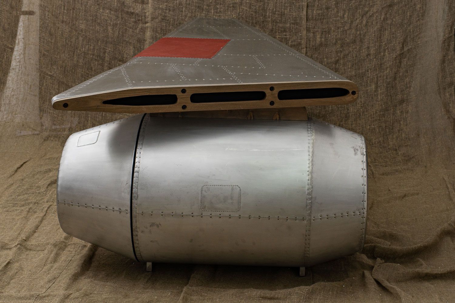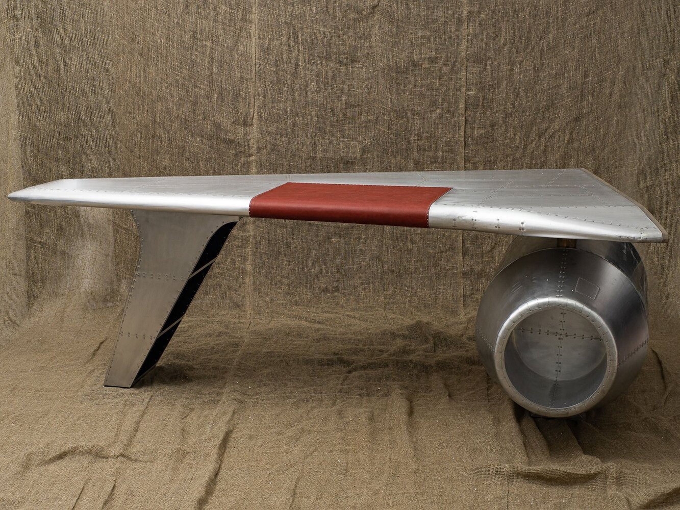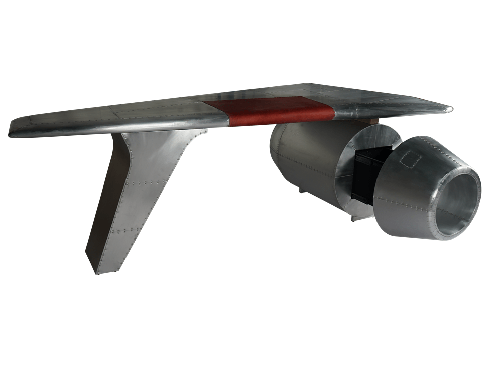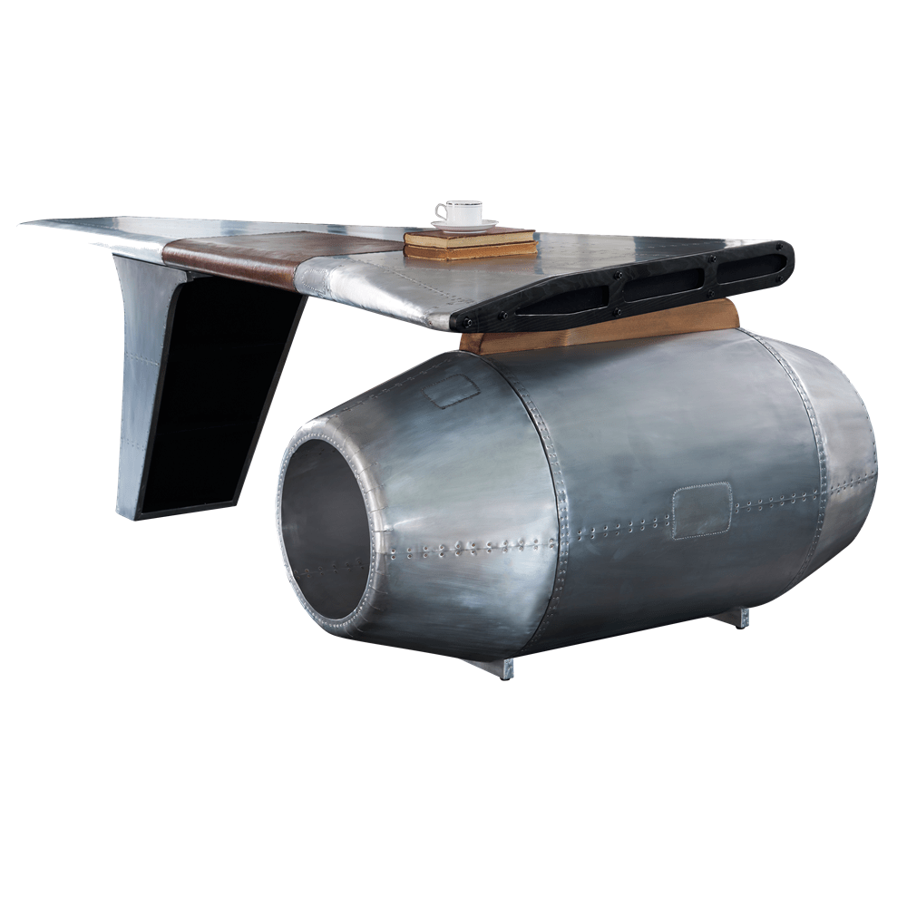 — Элегантный дизайн: Стол выполнен в оригинальном стиле, который сочетает в себе современные тенденции и элементы ретро. Его форма напоминает детали авиационной техники, что придаёт ему особый характер.