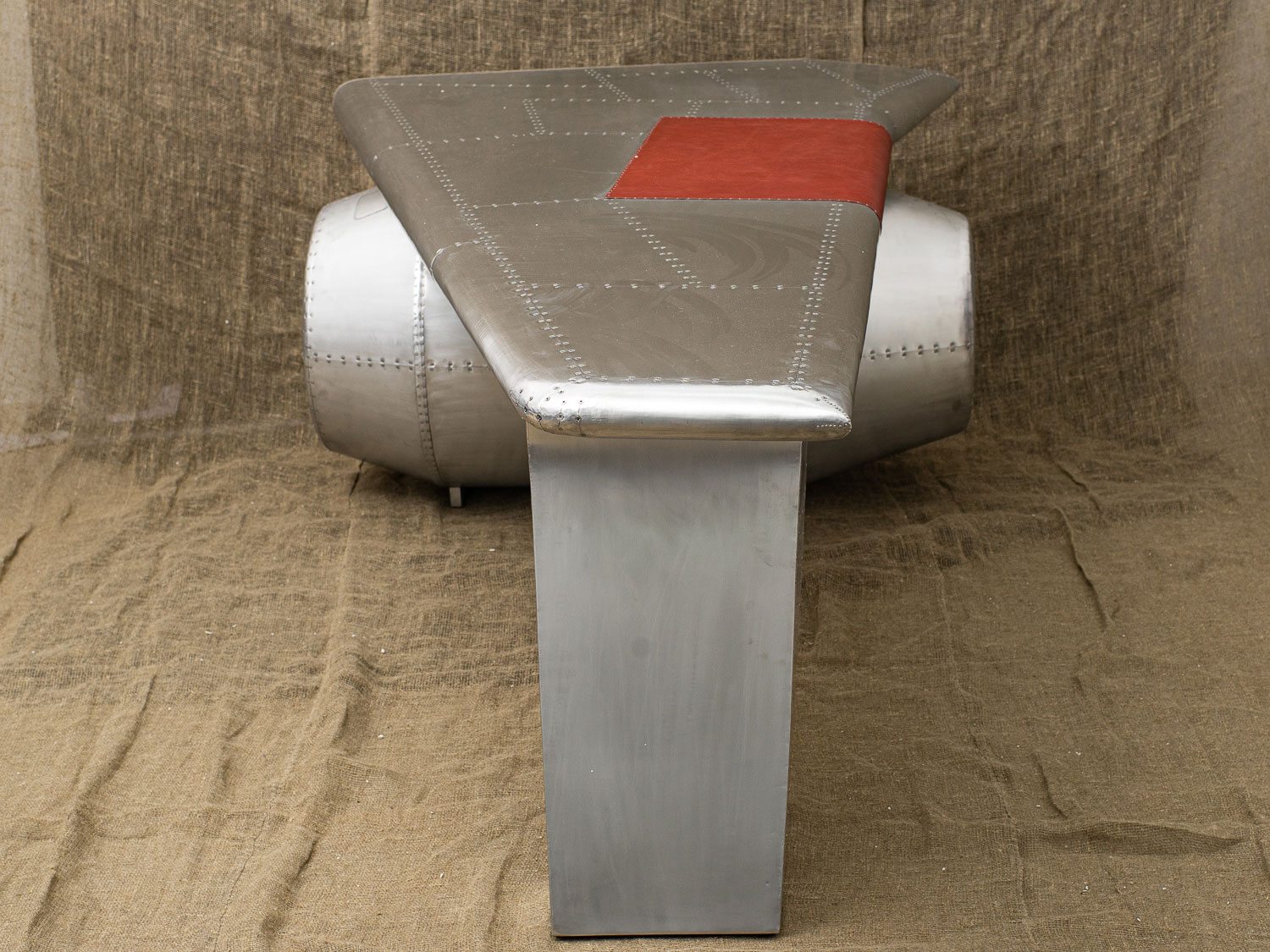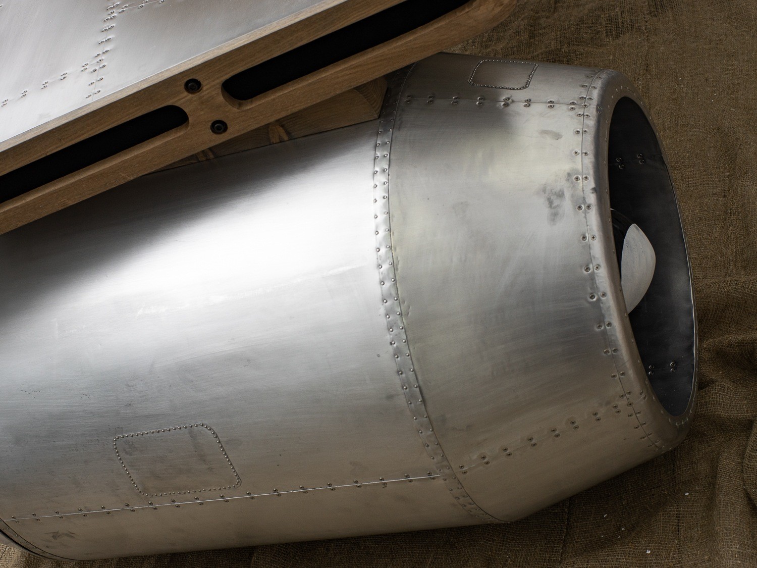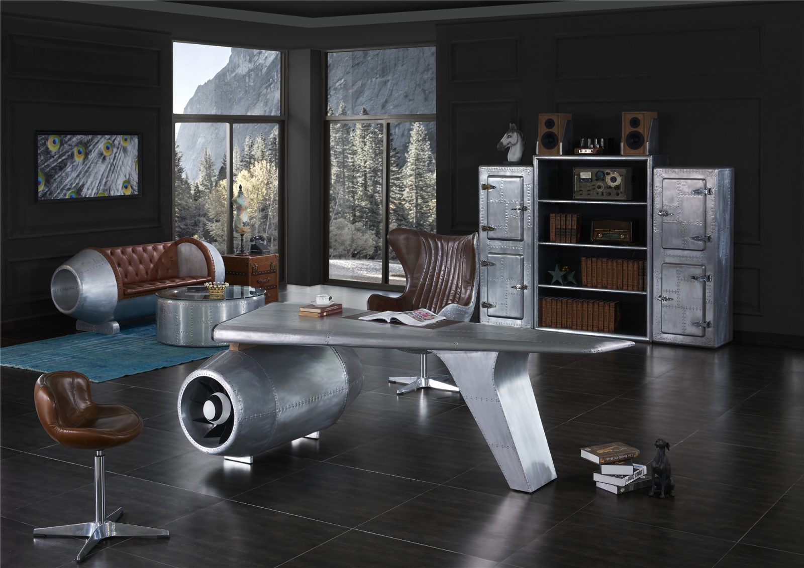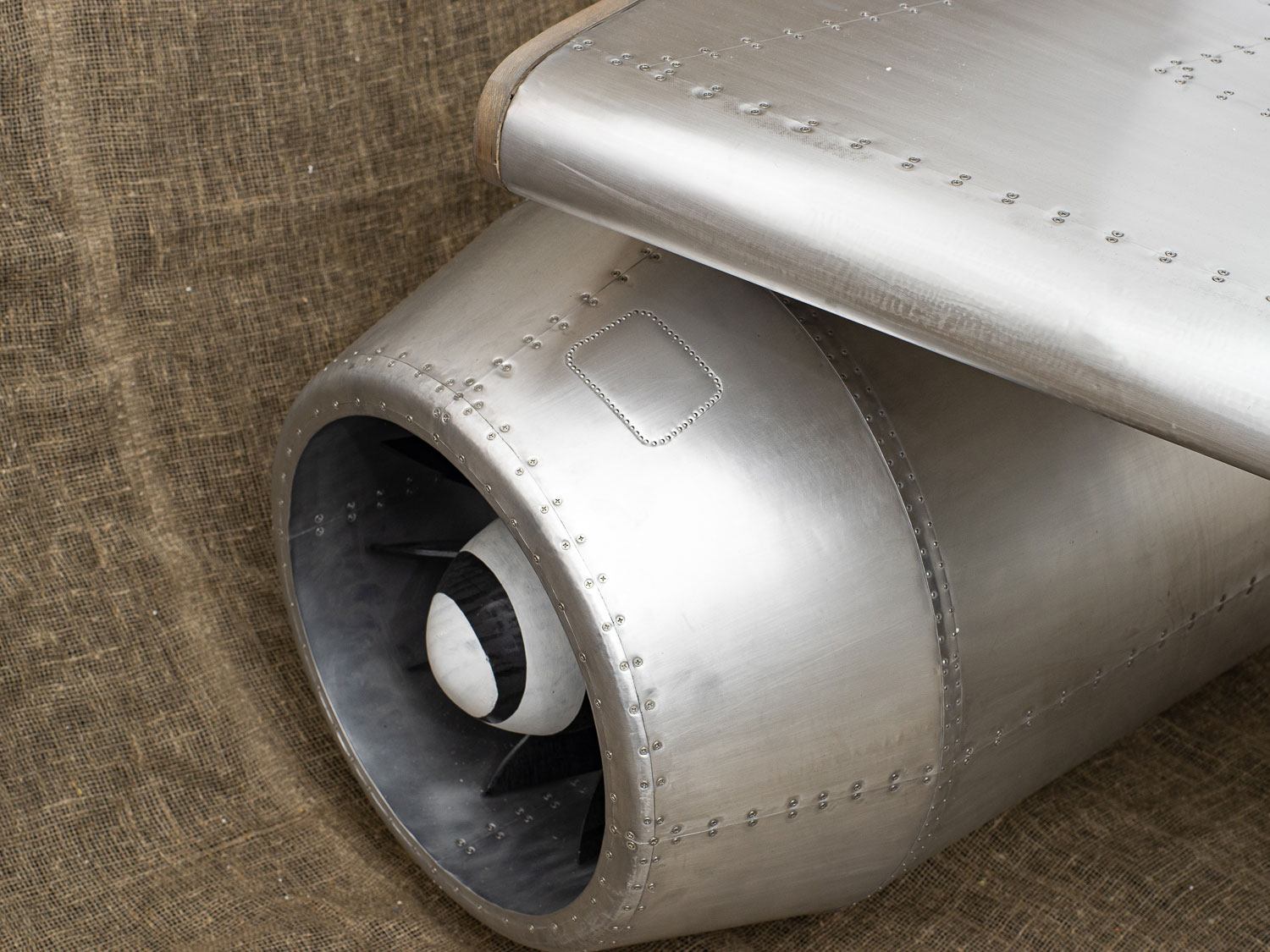 — Элегантный дизайн: Стол выполнен в оригинальном стиле, который сочетает в себе современные тенденции и элементы ретро. Его форма напоминает детали авиационной техники, что придаёт ему особый характер.