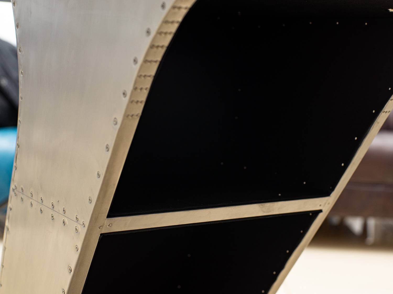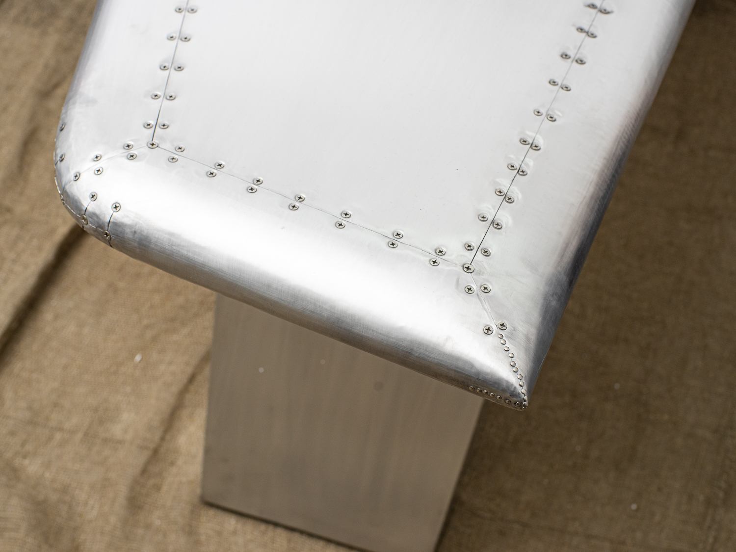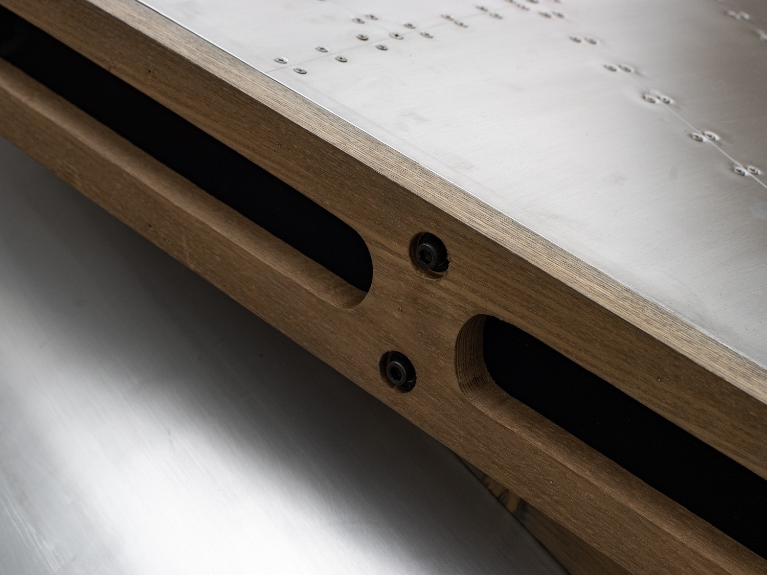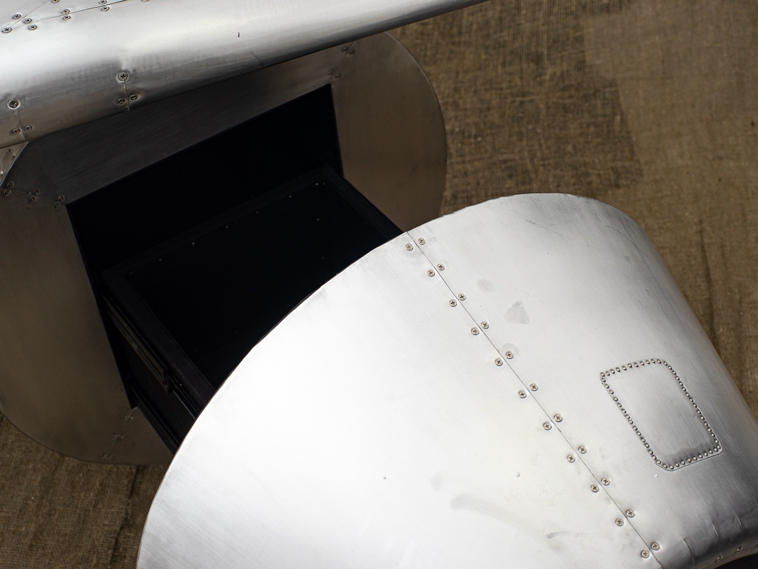 — Элегантный дизайн: Стол выполнен в оригинальном стиле, который сочетает в себе современные тенденции и элементы ретро. Его форма напоминает детали авиационной техники, что придаёт ему особый характер.