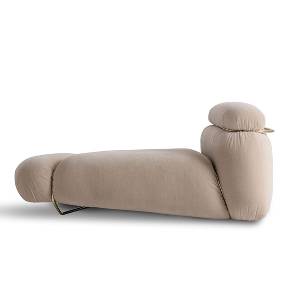 — Элегантное оформление: Шезлонг украшен изысканным металлическим декором, который добавляет нотку современности и утонченности. Он станет великолепным акцентом в любом помещении — от гостиной до террасы.